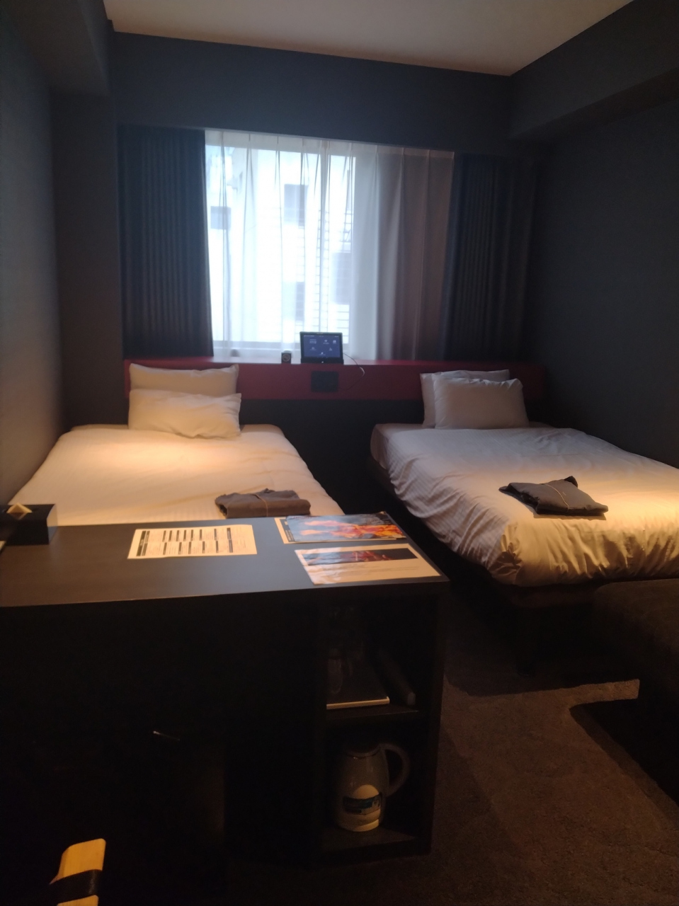 部屋はシックな暗めの内装でテーブルがないので、仕事したい方には不向きです。