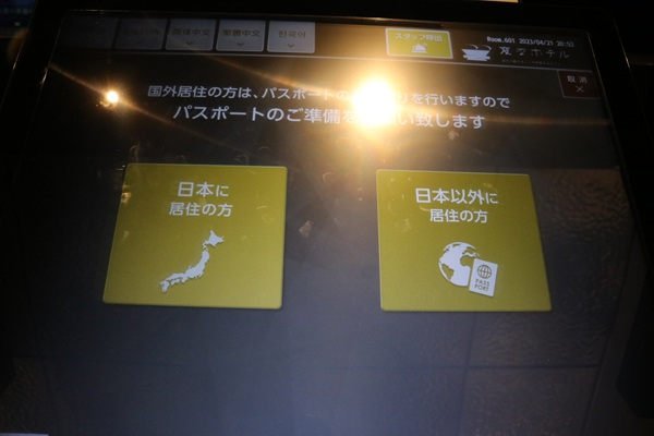 チェックインは機械で行いますが、裏でスタッフの方が待機されていました。