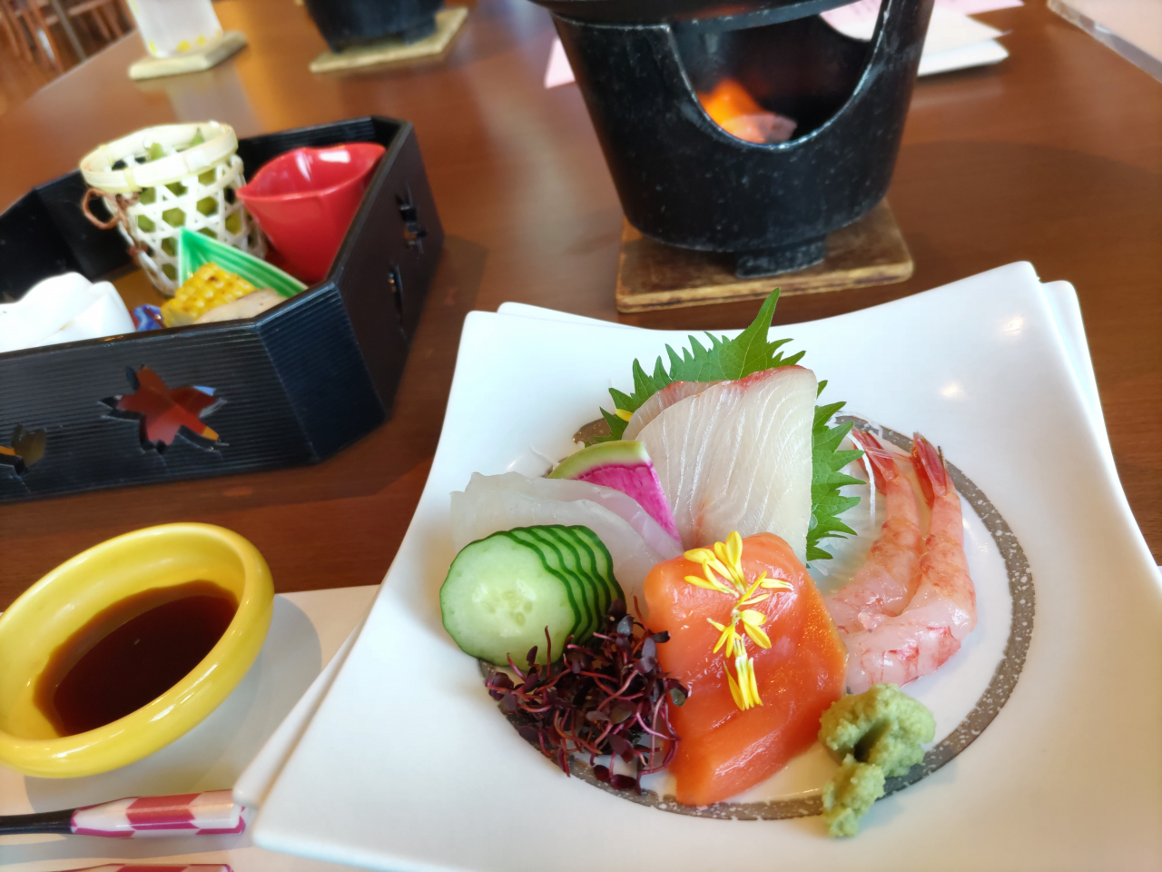 料理は夕食は懐石料理、朝食はブッフェスタイルでどちらも展望レストランでいただくのですが、新潟の地元食材を使った料理でメニューも豊富で美味しくいただきました。