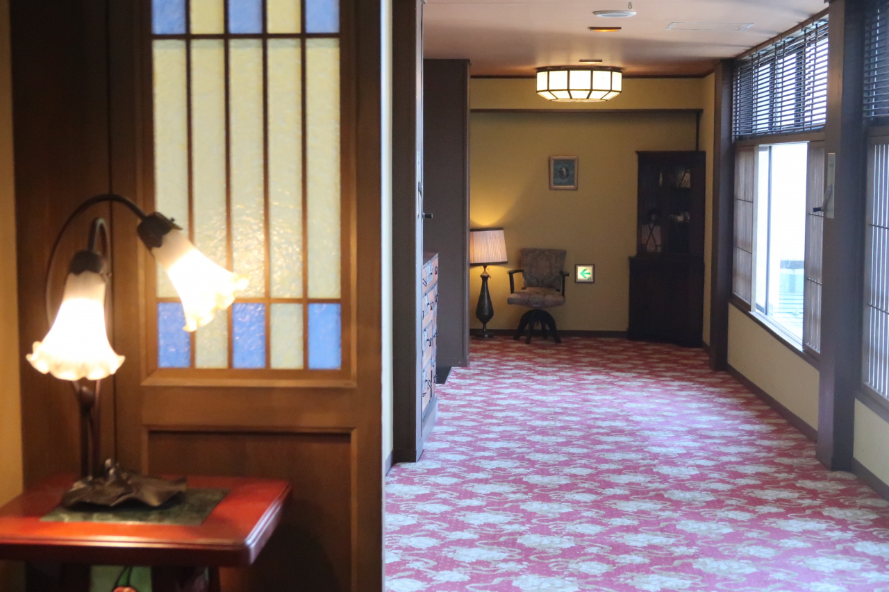 館内は広く、客室フロアは大正ロマンの内装で、レトロ調のかわいらしさが気分が上がりました。