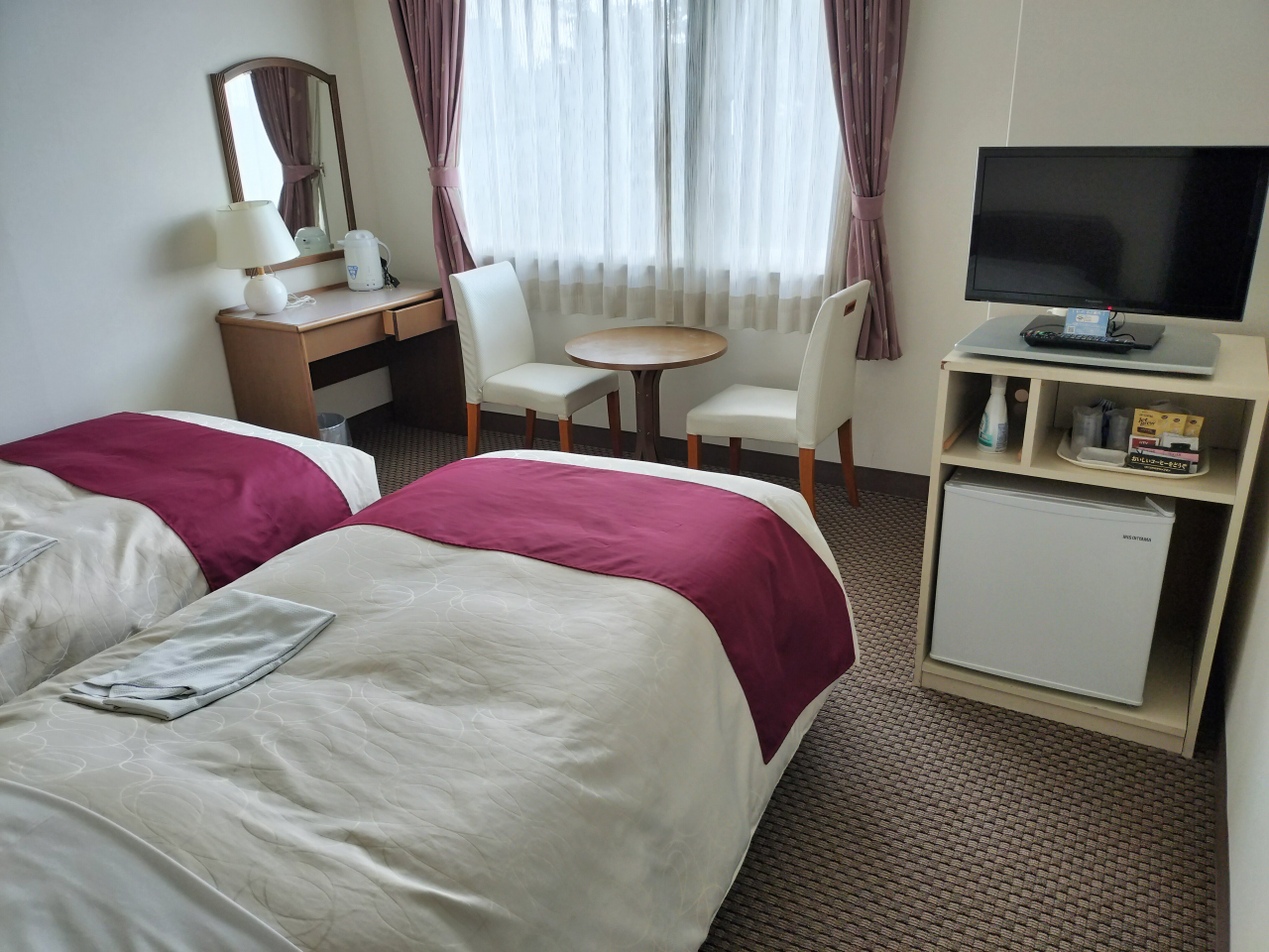 チェックイン時に女性用アメニティセットがもらえ、客室は窓が大きくて明るく、電車の音が聞こえます。