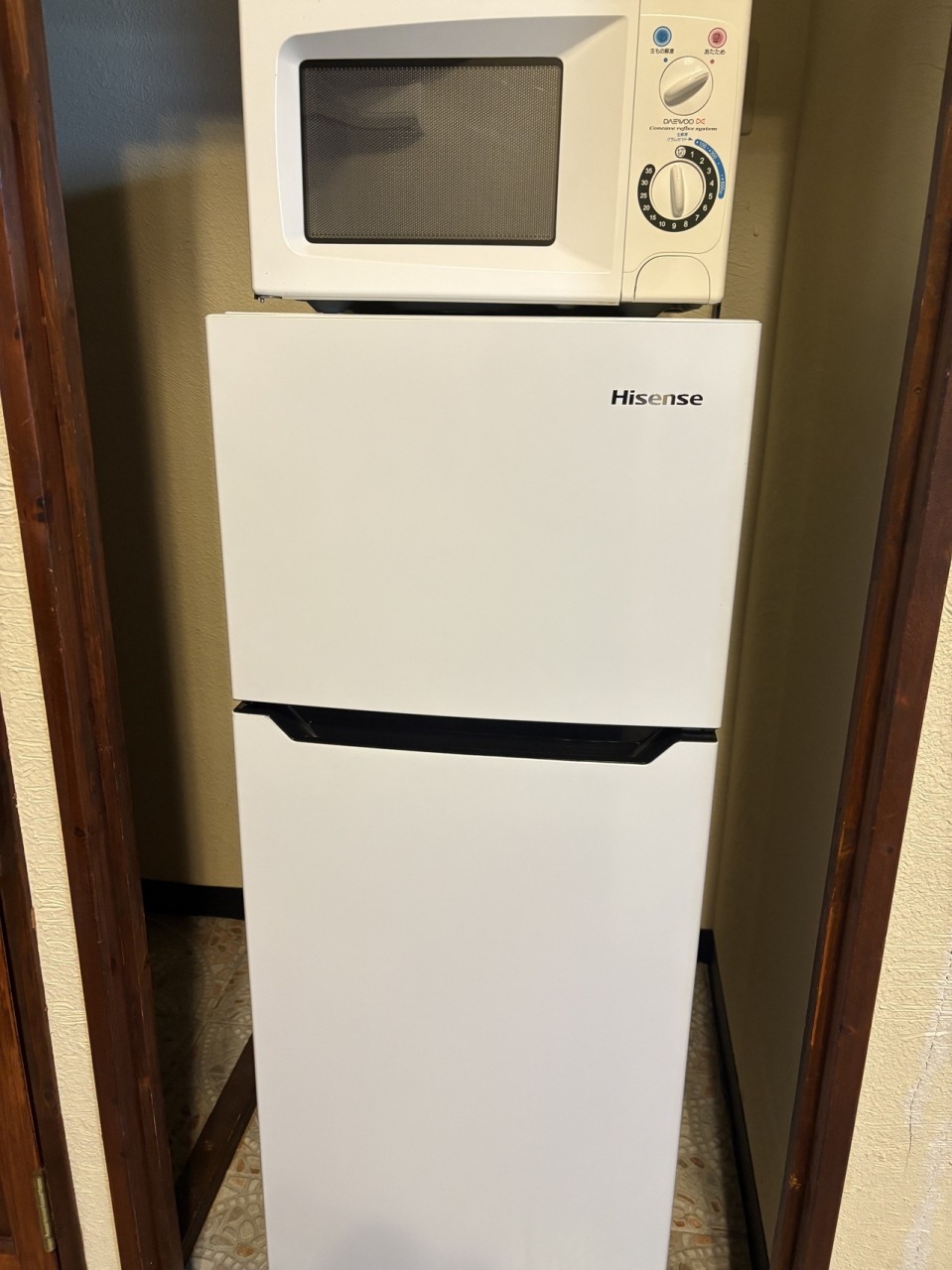 部屋の中には大きめの冷蔵庫がありキッチンもあります。また、部屋もコンドミニアムだけあって広くて部屋の前に車を停めることができるので快適でした。