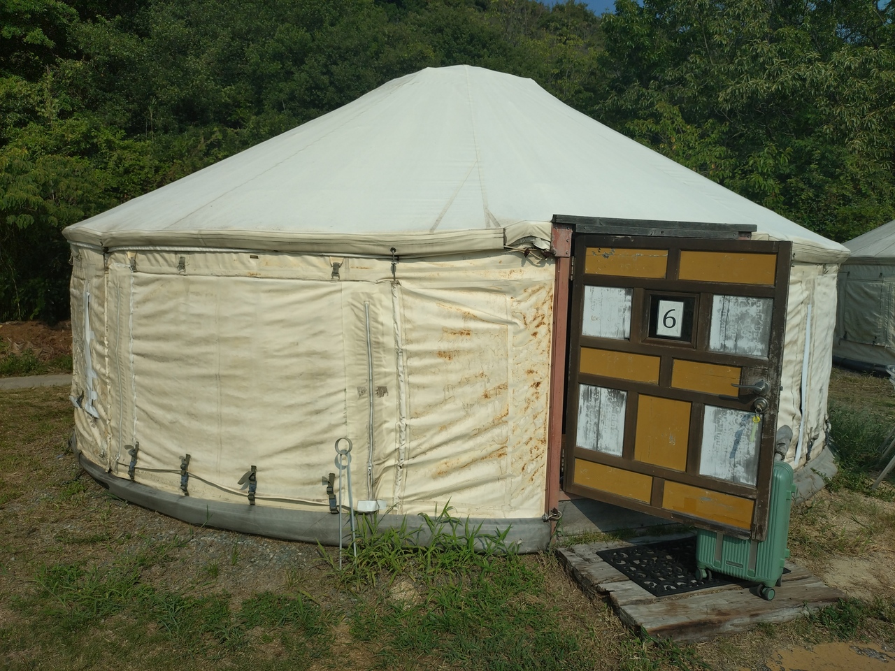 家族3人での初めての直島旅行。宿泊先を探していたとき、某有名アートホテルはちょっとお高いし…と思っていたところ、なんとゲル(中国語ではパオ)に比較的リーズナブルに泊まれる!ということで、こちらを選びました。