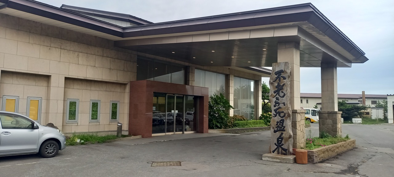 秋田市から高速も使って2時間弱で不老不死温泉に到着しました。新館と本館があり、今回は新館に泊りました。日帰り入浴の受付は本館です。