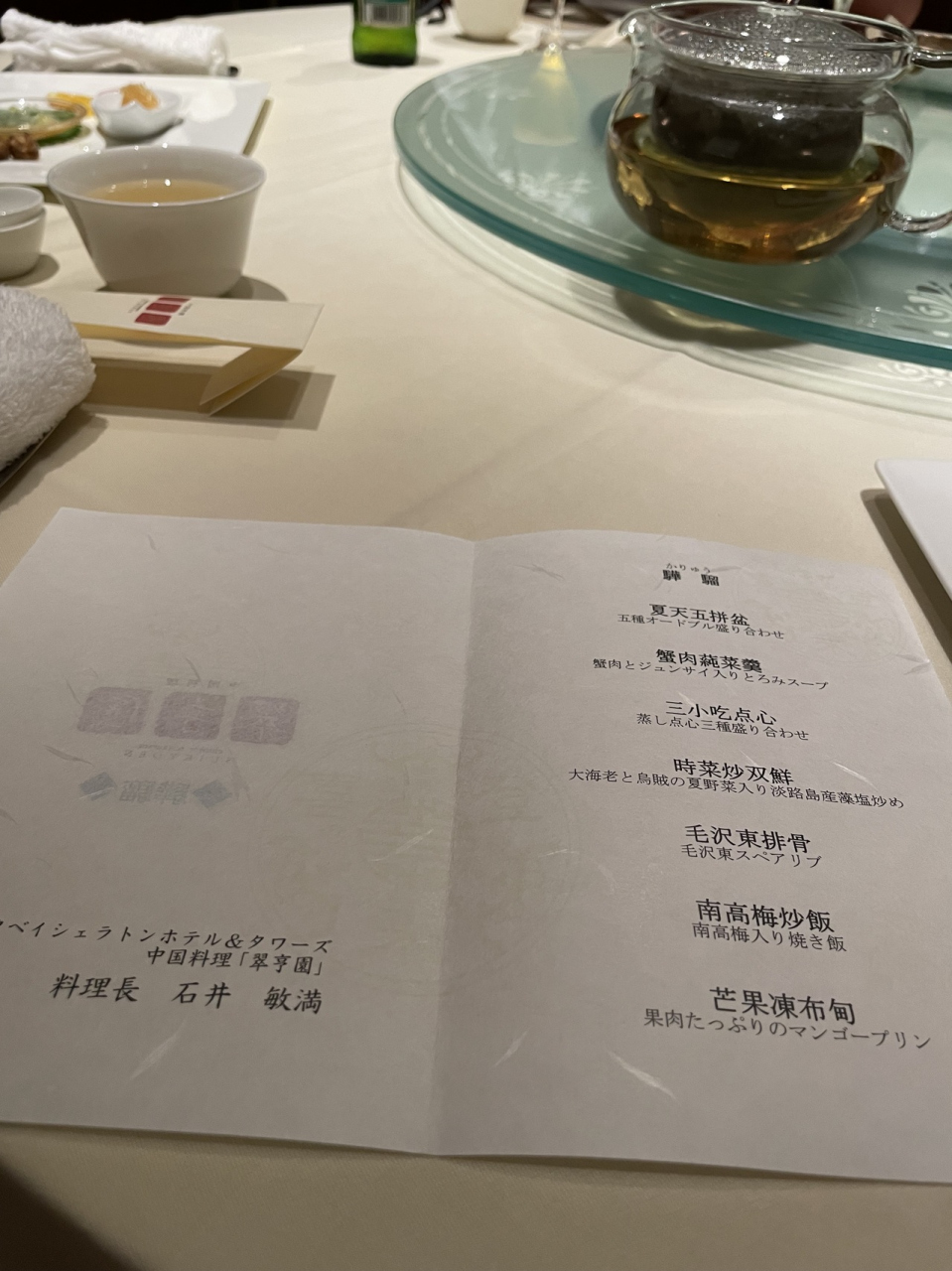 ここのランチの飲茶バイキングが美味しかったので、夕食は中華のコースにしました。美味しかったです。