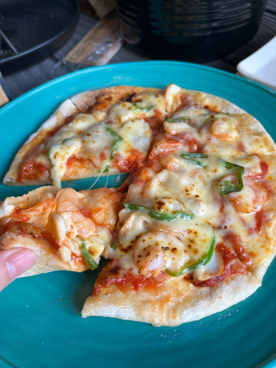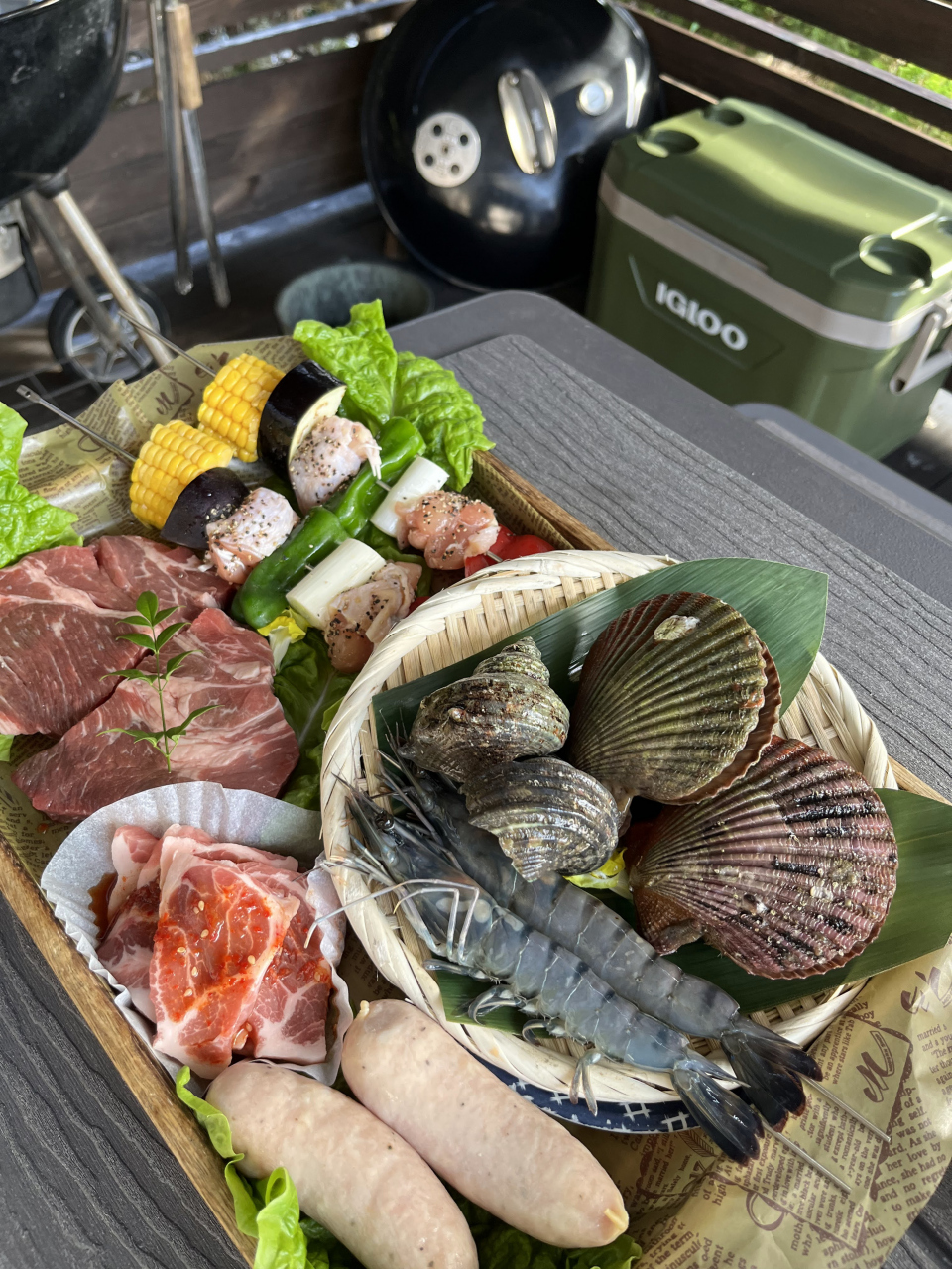 ご飯もBBQに海鮮セットとピザをプラスしましたが、美味しくて満腹になりました。