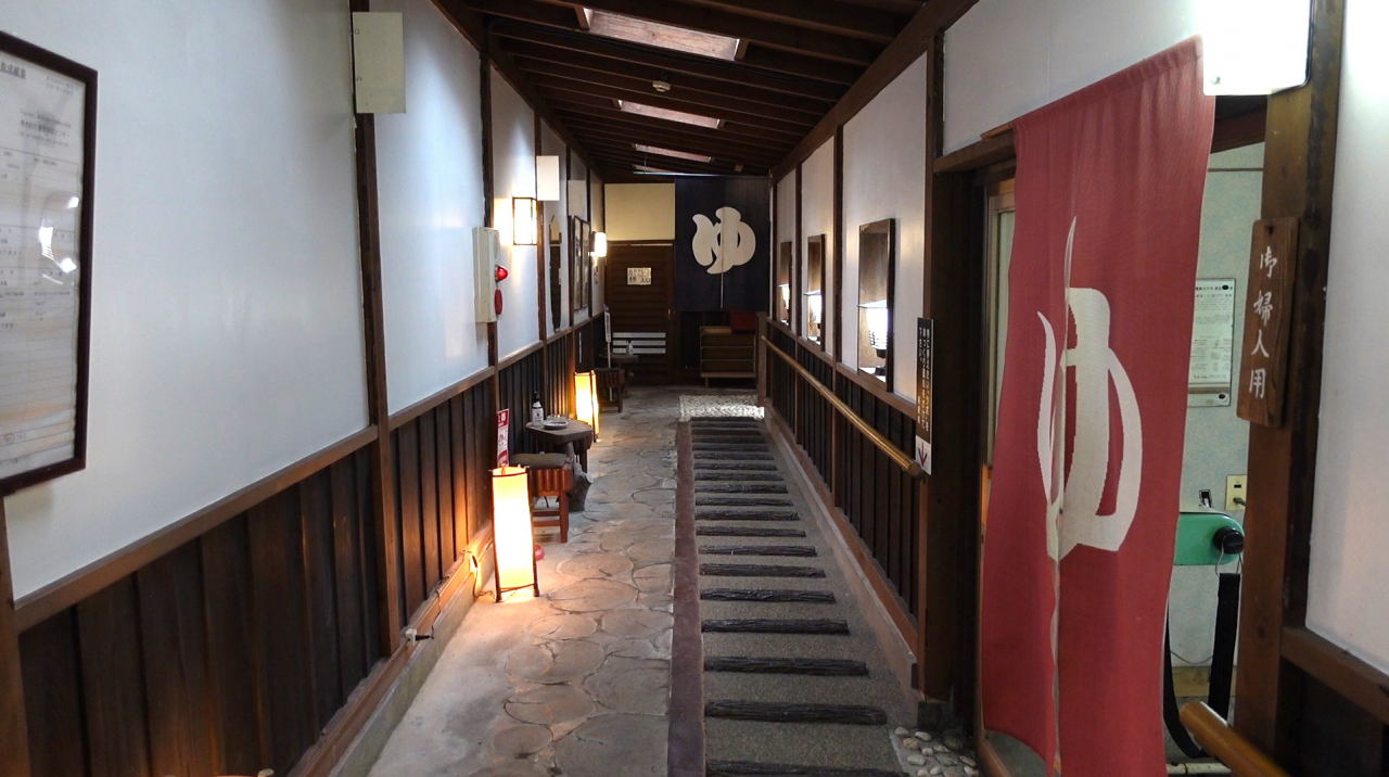 本館、新館がありエレベーターはありません。温泉浴室は道路向かいにあり、地下通路を通るか、玄関から一度外に出て浴室棟に移動するかたちとなります。