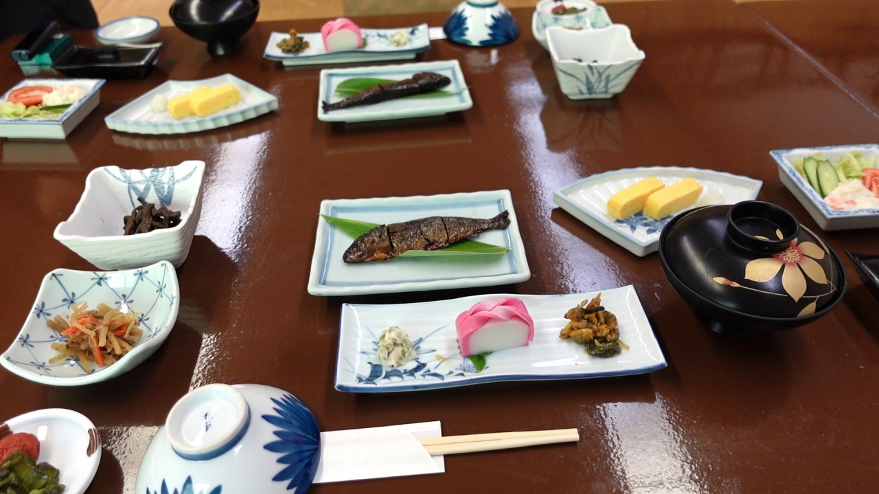 夕食は大広間で頂くかたちになります。調理はご主人自ら担当していて、特徴はありませんが、及第点だと思います。