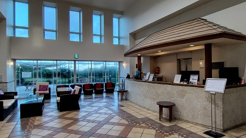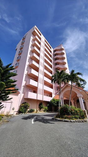 廊下が外側にあるリゾートマンションの作りで、エレベータやロビー周りはあんまりきれいではない感じ。においがした。