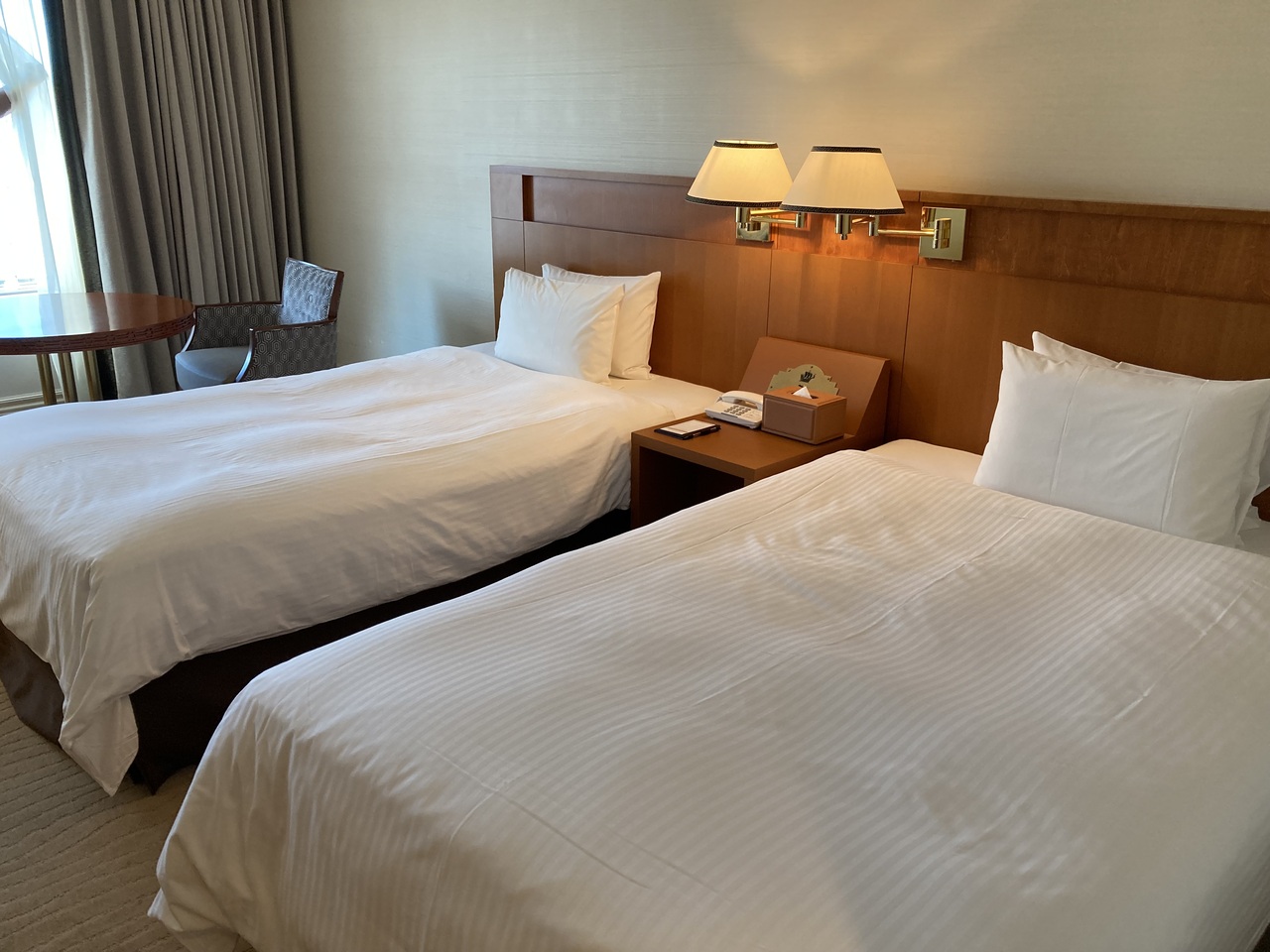 一泊朝食付き10,000円程度で予約したので、ビジネスホテル程度だろうと、あまり期待せずに行ったのですが、ロビーも客室も大浴場も、どこも広々と余裕のある造りで、設えも豪華でびっくりしました。