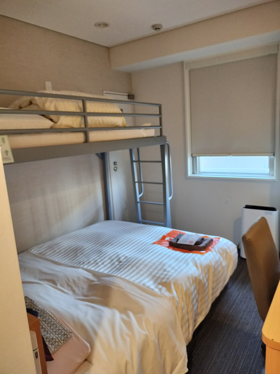 全国チェーンのビジネスホテルですので、安定した安心感があります。無料朝食、大浴場つきのホテルが嬉しいです。今回はお得なプランでしたので、部屋はおまかせ、2段ベッドの部屋をシングル利用でした。部屋はきれいに清掃されていて、広いとは言えませんが、設備は整っていました。朝食は、焼きたてパンがあり、まあまあ美味しかったです。