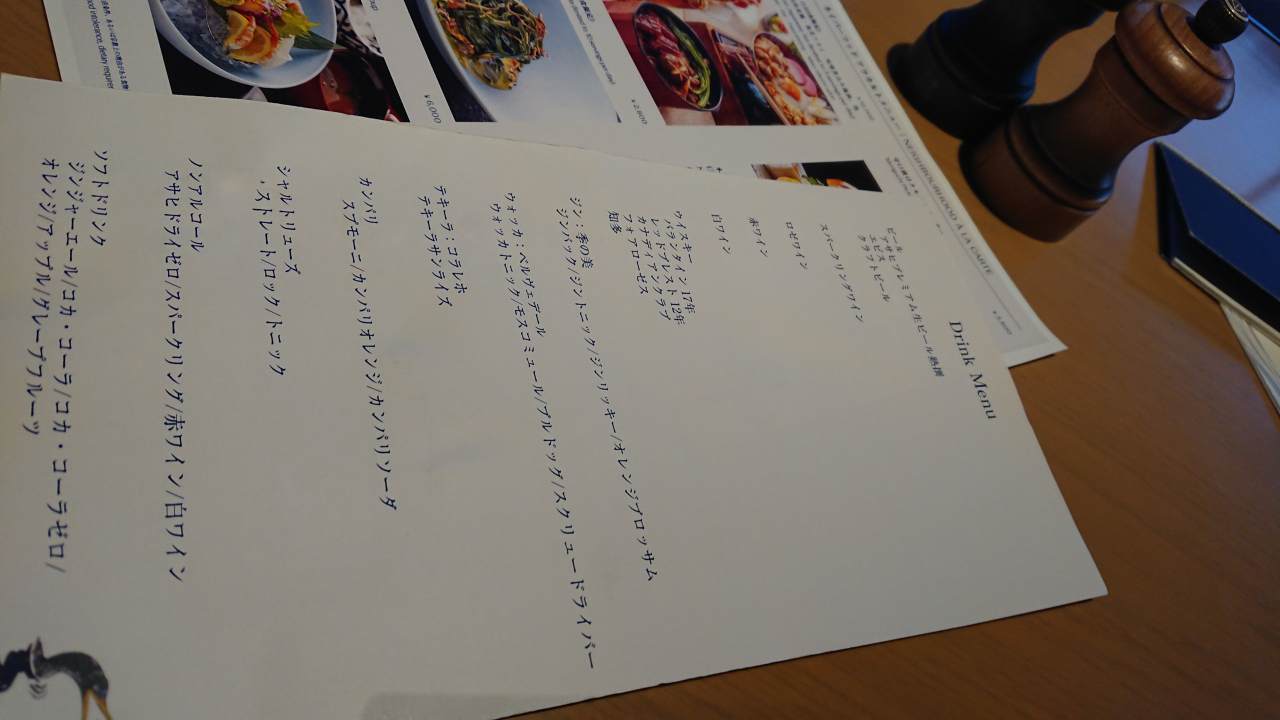 ウェルカムドリンク用のメニュー。ディナー時に利用した。