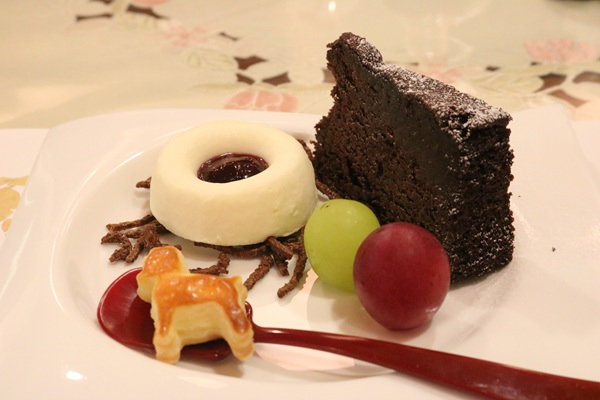 二食付のプランにしました。裏庭がドッグランになっており、犬連れの方もいらっしゃいました。お料理が大変美味しく、初めてマコモダケをいただき、白ワインもおいしくいただきました。デザートには「犬」のクッキーが添えられていました。