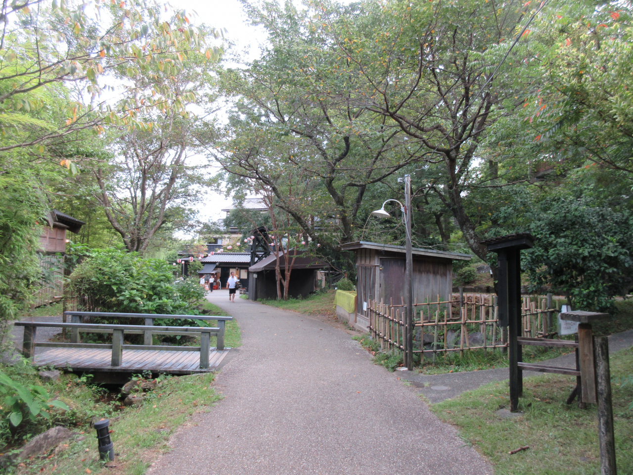 この宿は、里山のホテル敷地内に、帳場(フロント)、レストラン、温泉風呂、離れ客室、別邸客室などの建物が点在してます。移動の基本は外歩き、別邸は少し小高い丘にあります。子どもたちは、昔遊びで駆け回り、鯉の池で餌やりして、大きい露天温泉で大はしゃぎ、そしてレストランの食事で大満足、良い思い出になったと思います。大人も昔懐かしい玩具遊びに夢中になるし、広い露天風呂でのんびりできます。敷地内に田んぼがあって、散策にも楽しいです。