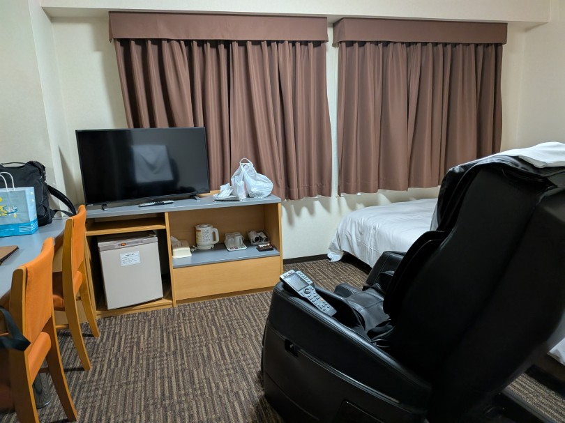 秋田の常宿です。何といっても駅から近いです。駅直ならばメトロポリタンが近いですが値段が高くここはお手頃な価格で宿泊できます。部屋も快適でマッサージチェア完備の部屋もありますので旅の疲れもいやせます。深夜まで営業してる人気のラーメンもあります。唯一原点になったのは枕元にコンセントないこととコンビニがやや遠いことくらいです