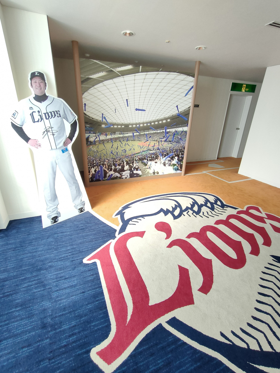 選手の等身大パネル、グローブ、バットなどが展示されていました。