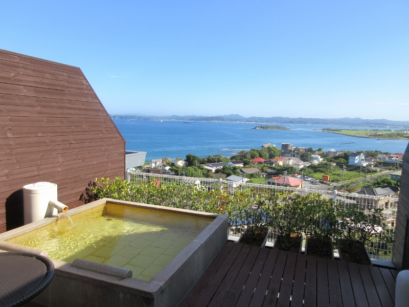 館山湾を眺められる景色の良い所にあり、全室露天風呂付の宿でした。食事も上品に盛りつけられていて、館山の地図のプレートも提供されました。食事の後はラウンジでアルコールやソフトドリンクも楽しめます。部屋の露天風呂の方が気持ち良かったですが、大浴場に行くとそばにハーゲンダッツが食べられる部屋がありました。料金はやや高めだけれど、ちょっとしたサービスが嬉しく思えました。