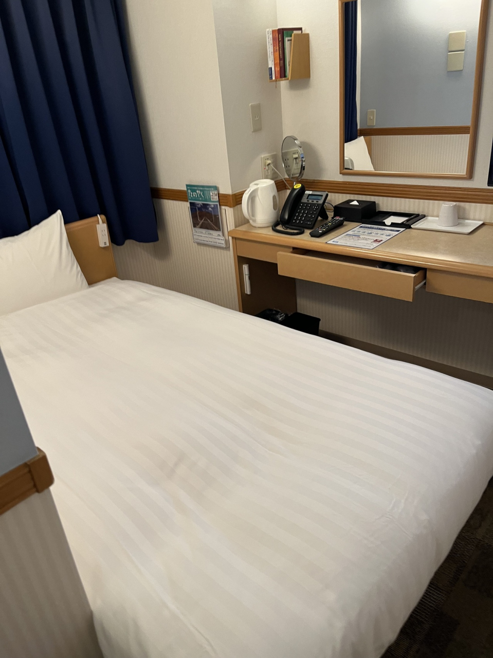 中央に水回りがあり、その脇に個室的な感じになっています。プライバシーを保てるので、このタイプの部屋に泊まるのは初でしたが、これも有りかなぁ…と思いました。