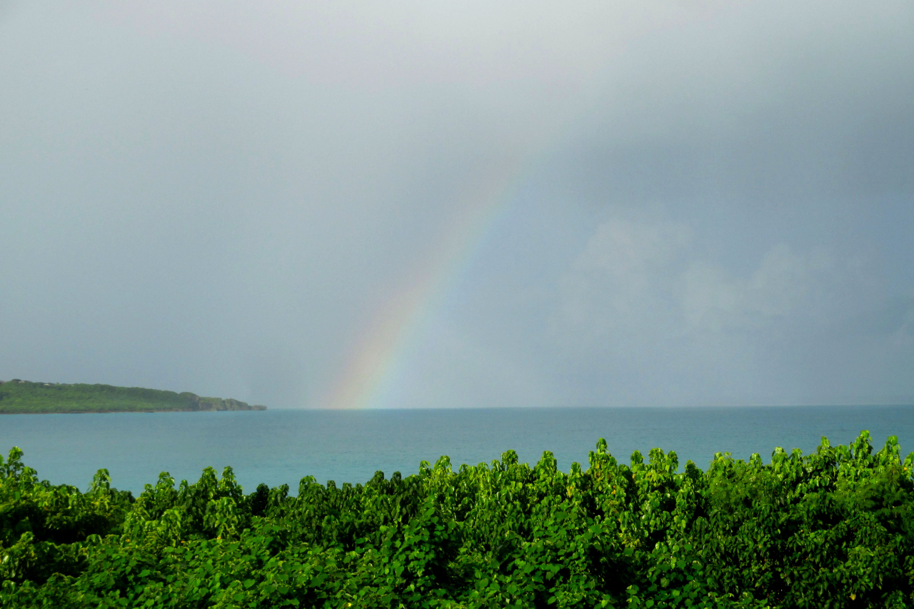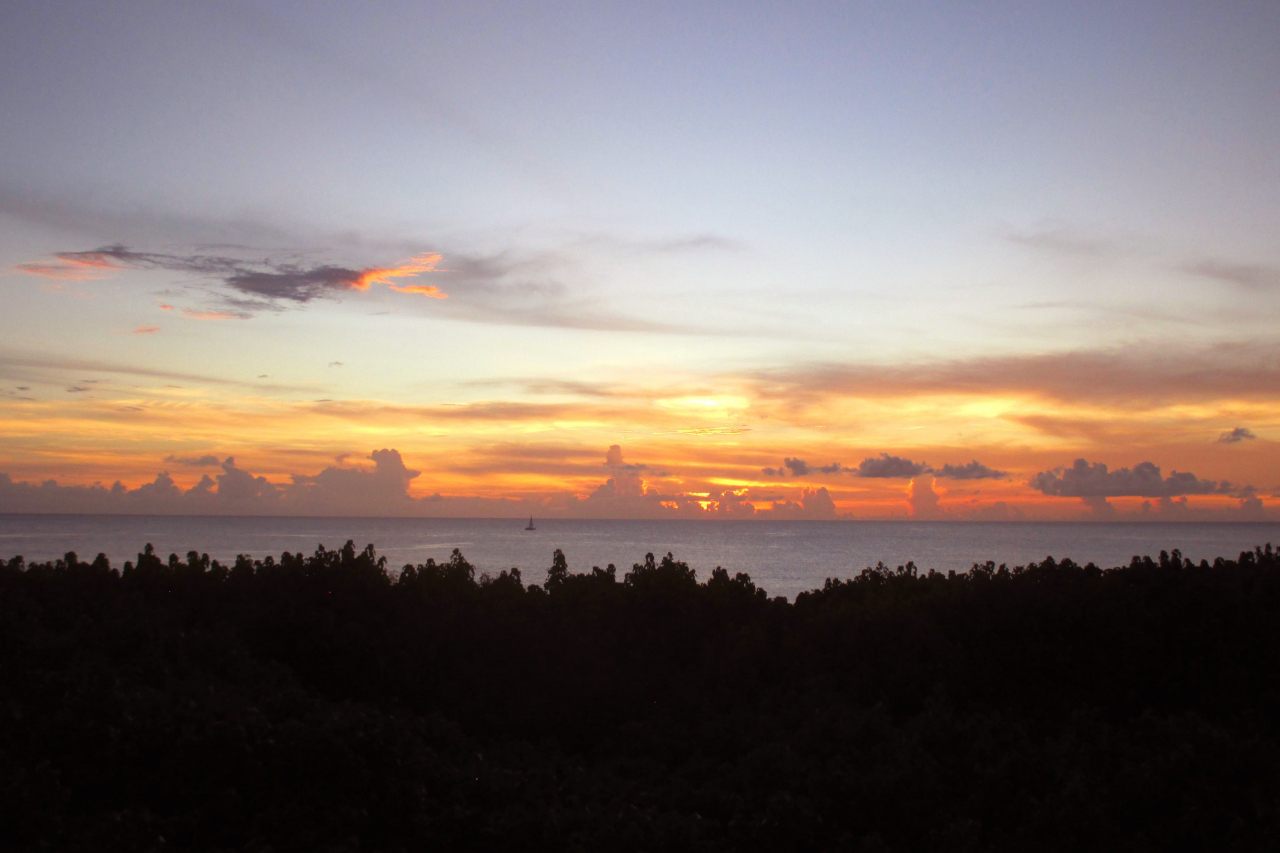 ホテルは前浜の北隣の海岸線近くに立地していて、最上階の部屋で正面が西向きだったので、前面に邪魔するものもなく雄大な夕景が見られました。宮古島ではスコールに良く出会いました(虹も見られました)ので、この時間帯に降らなかったのはラッキーだったのかも知れません。なお、この様に見晴らしが良かったので、満天の星空も期待しましたが、意外に明るいホテルの明かりが邪魔をして、期待通りにはなりませんでした。