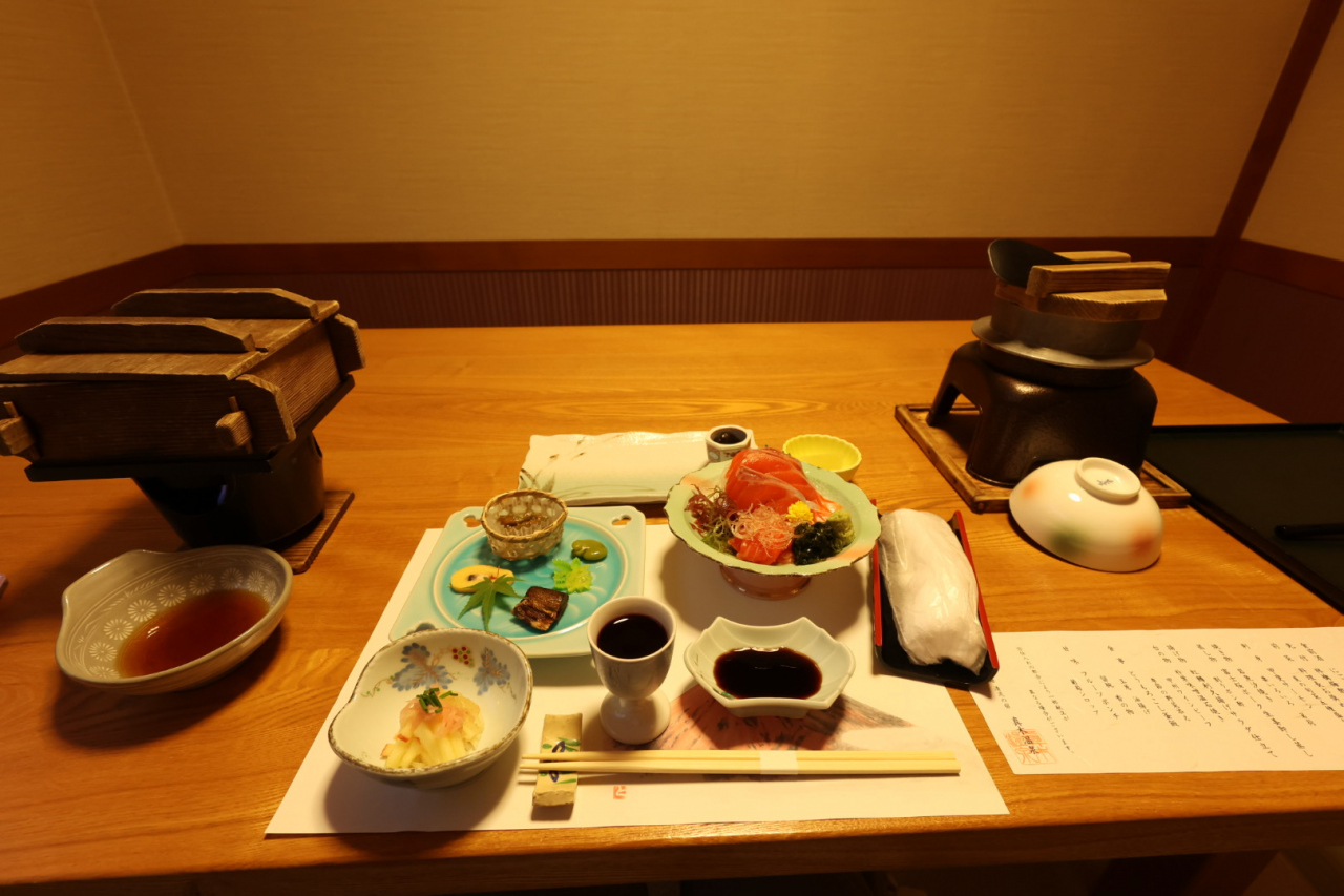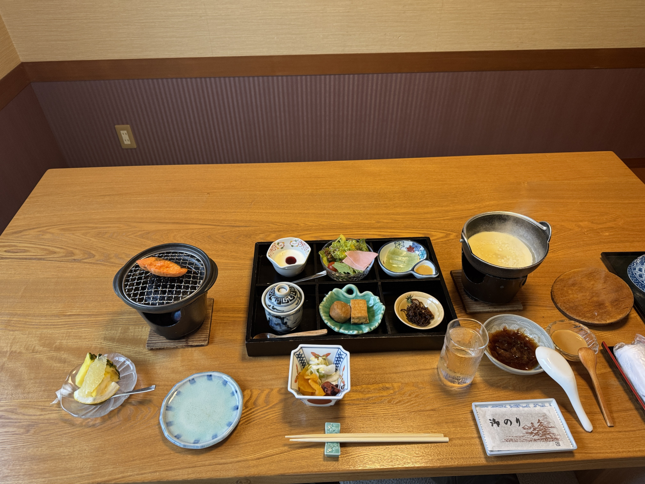 食事は瀬音の館から少し上がった場所の個室会場で頂きました。特に夕食に出てきた甲州ワインビーフの牛肉は絶品。その他の料理も美味しいものが多くて満足でした。