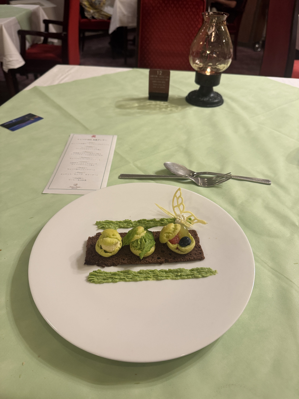 そしてお目当ての419キャベツのディナーですが、とにかく甘くて美味しいというのが第一印象。特に前半戦で出てきたサーモンのキャベツ包みの料理が419の甘さを一番感じられて絶品。レストランスタッフの対応もとても丁寧で心地良く、わざわざ食べに来て良かったと思えるコース料理でした。