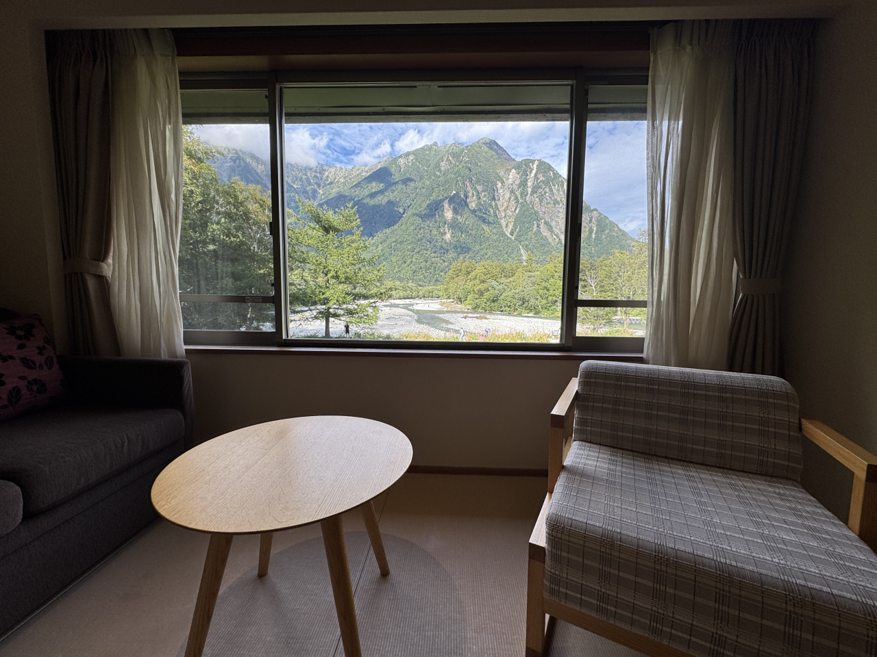 部屋は穂高連峰の見えるリニューアル済みのツインルームで、眺望は勿論部屋も綺麗でとっても快適に過ごせます。尚水回りはリニューアルされていないようでちょっと年季を感じました。又、人気の少ない夜や早朝に上高地を楽しめるのは宿泊者の特権と言ったところで、特に夜の星空は感動ものでした。