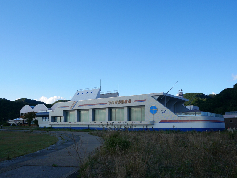 長距離走った後は温泉と思い、札幌から羊蹄山をまわり豊浦魚港に降りてきて「天然豊浦温泉しおさい」に泊った。あてがわれた部屋が大広間すぎて目の前は海。