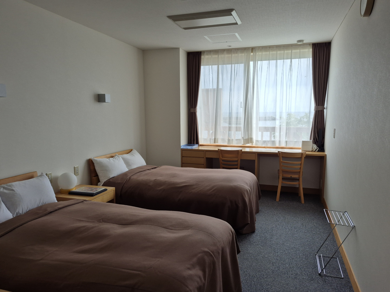 豊浦町の海沿いのエリアにあり、客室の窓からは目の前の海が見えました。