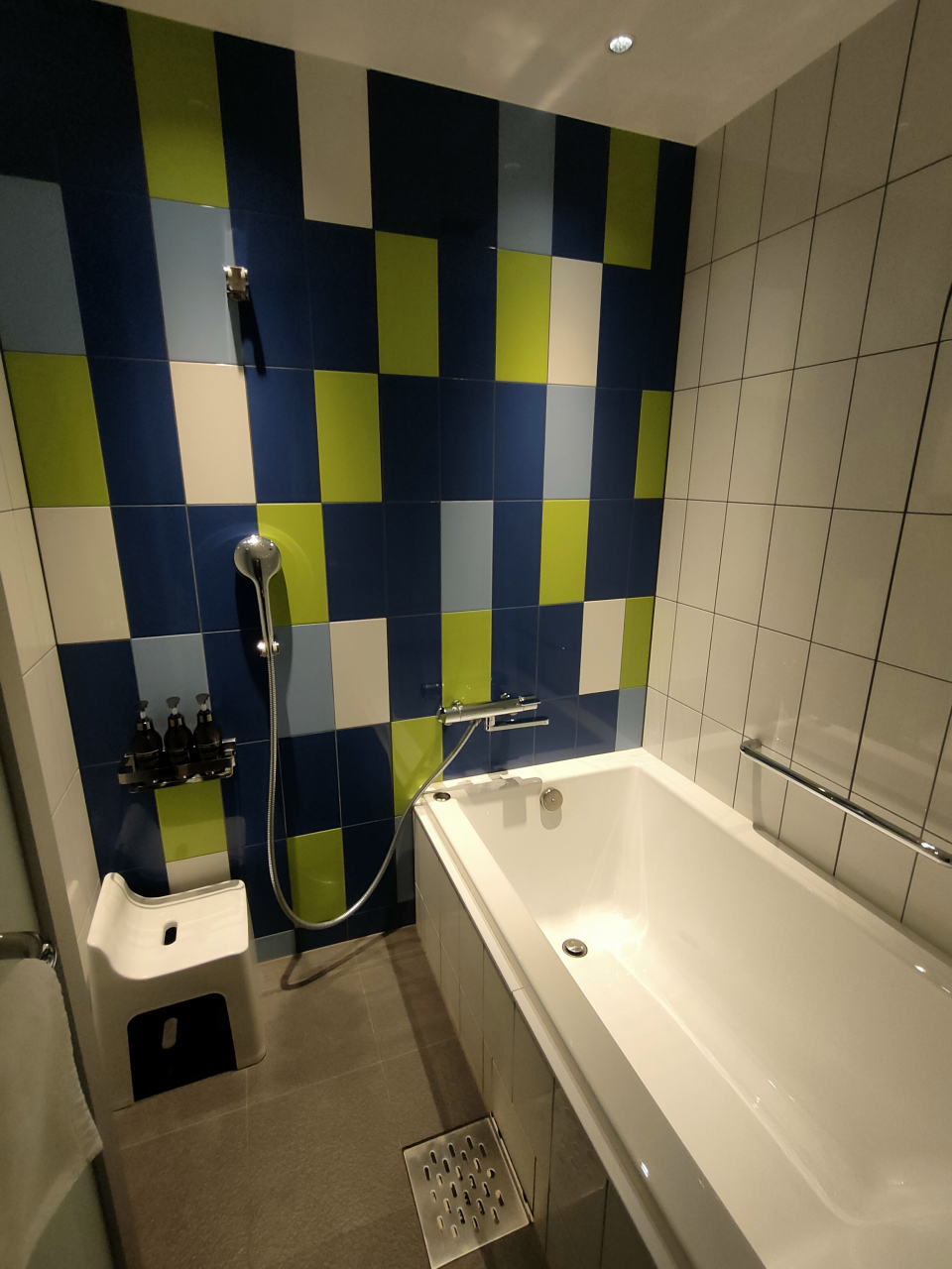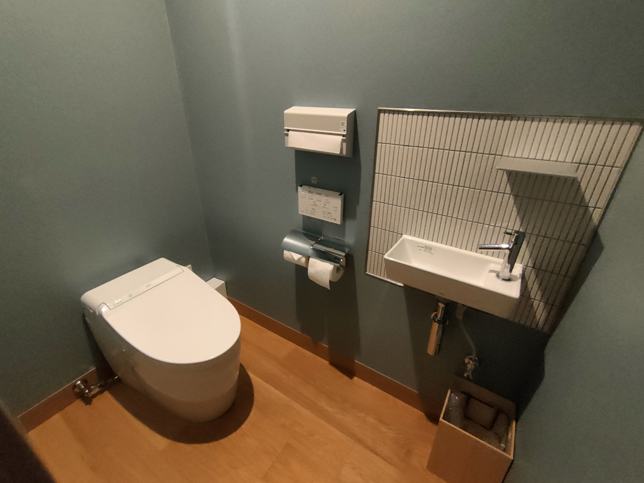 洗い場付きのバスルーム、トイレの手洗いはタオルペーパーがありました。