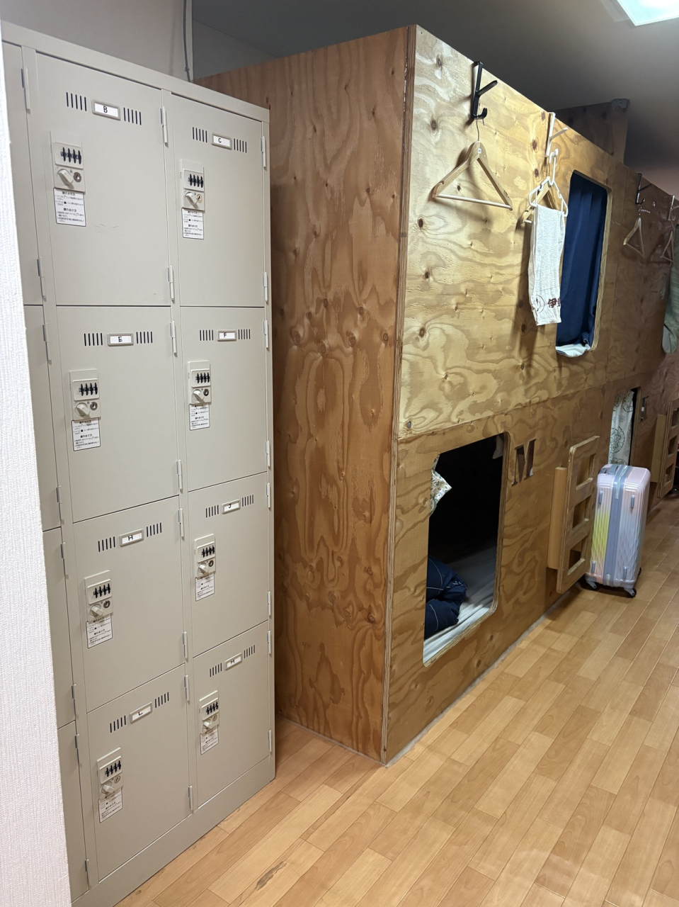 部屋の中のロッカーは小さいので貴重品位しか入りません。バックパックは鍵がかかるものがあった方が安心です。