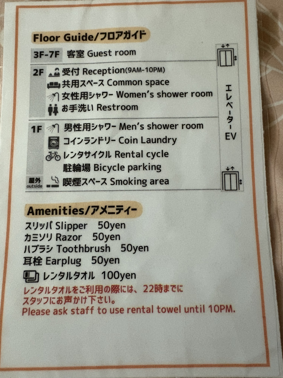 また部屋のシャワーは夜中は使えないようになっていますが、別の階に女性専用シャワーもあり安心でした。