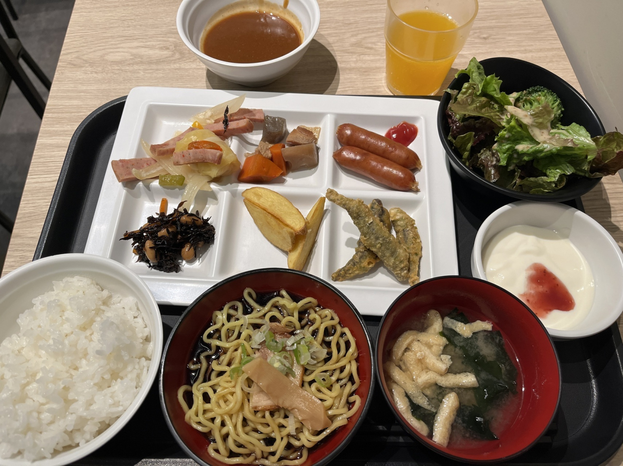 開店6:30~軽バイキング料理で満足しましたし、富山ブラックありました