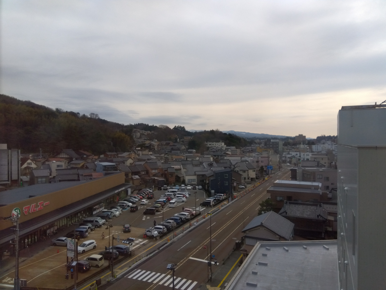金沢駅はおろか、同じ地名の東金沢駅からも徒歩ではアクセスできない立地ですが、その分平面駐車場完備で価格は控えめ。設備はくたびれていますが、エコモニと銘打った無料朝食ではご当地「チャンピオンカレー」が提供されています。道路の向かいには地元スーパーの「マルエー」もあり、車での来館かつ寝るだけであれば十分。