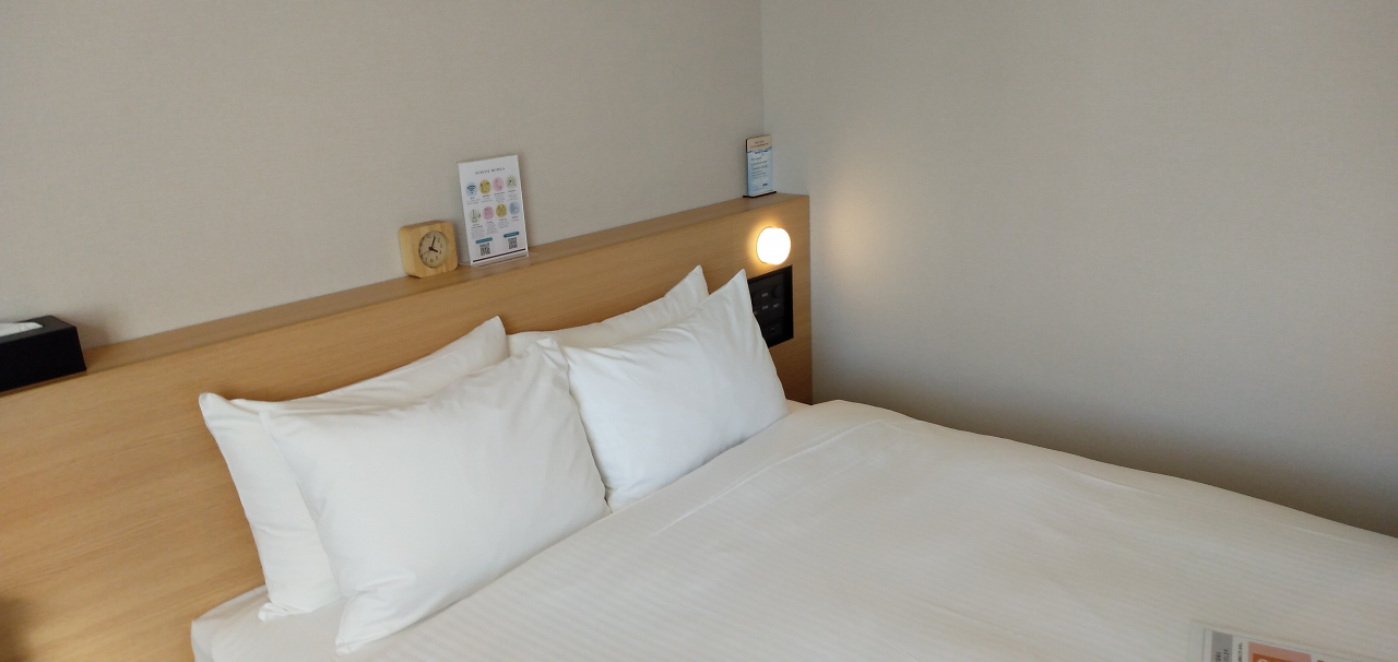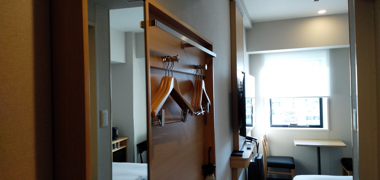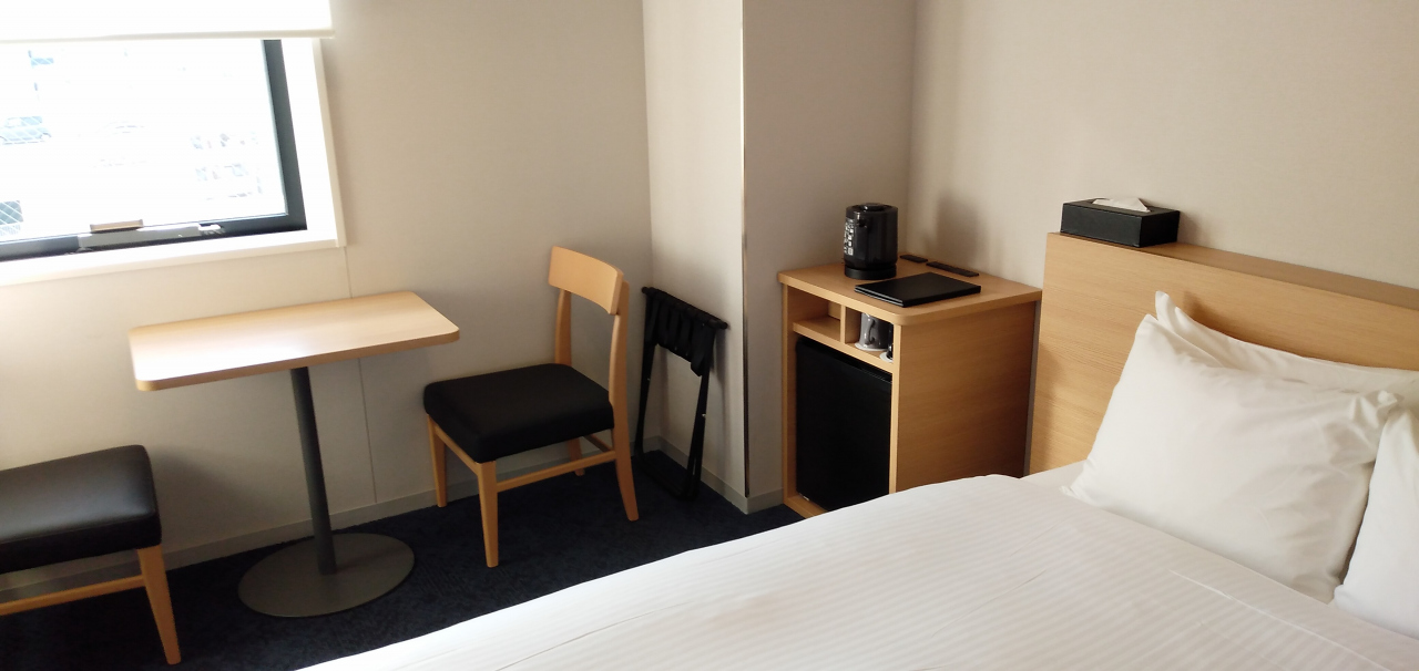 熊本の繁華街から徒歩圏内、近くにはホテルが並んでます。チェックインは自動機のみ、手伝いの女性が付近にはいますが自動チェックイン機が苦手な方は不向きです。客室はきれいでテーブルがあるのも、コンセントが多いのも、助かります。ルームカードを差し込まないと電源が入らないタイプですが、差し込むためのものが壁にかかっているので、外出時も電源が切れずにすみます。