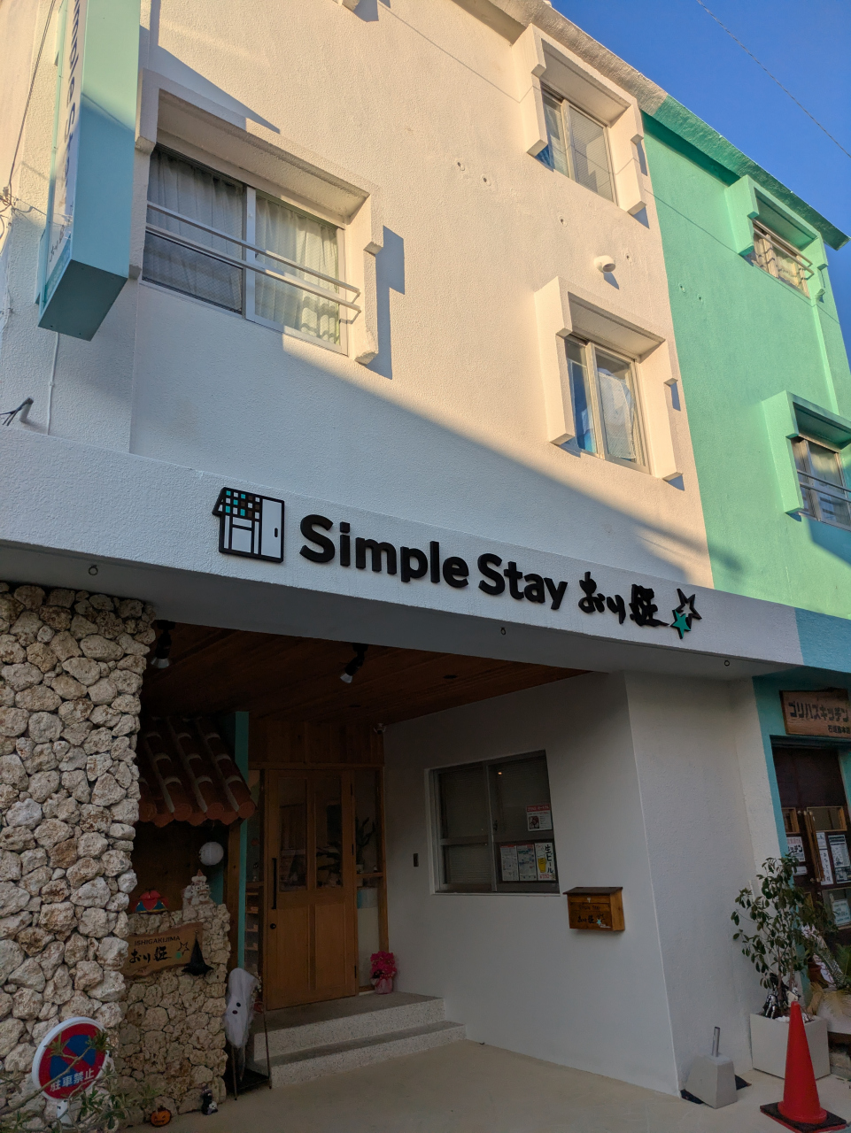 離島ターミナルやユーグレナモールから徒歩10分くらいの住宅街のなかにあります。近くにコンビニや飲食店もあり、徒歩でまわれる良い立地でした。