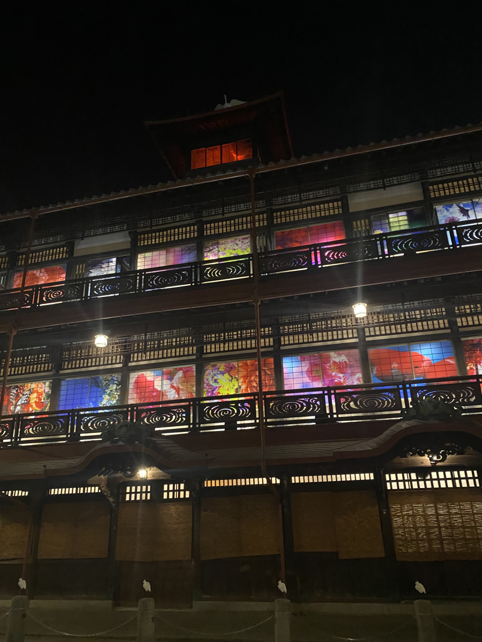 道後温泉本館から徒歩2~3分の場所にあります。フロントにテディベアの人形がたくさん置かれていてかわいらしい感じがします。食事は洋食フルコースでお魚、お肉、デザートなどとてもおいしくいただきました。朝食は和食、洋食から選択できます。ホテルですが、大浴場もあり、道後温泉を楽しむことができます。