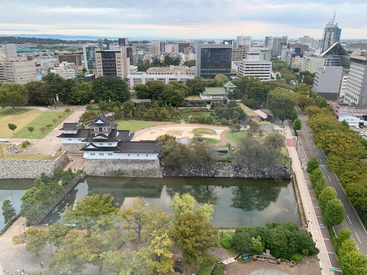 富山駅から路面電車やバスで10分弱と少し離れていますが、富山城の正面に位置し、客室から富山城を見下ろすことができます。ガラス美術館へも徒歩で10分程度と、市内観光には便利でした。IHGの会員登録をしていたのですが、レイトチェックアウトがPM2:00まで無料となり、ゆっくりできました。