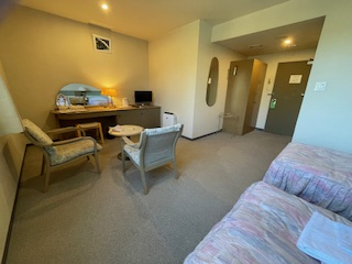 ツインルームのシングルユースで宿泊。同行者は小さな小上がりのあるツイン、私は小上がりがなく椅子テーブルがあるツインでしたが、小上がりがない部屋の方が広いです。