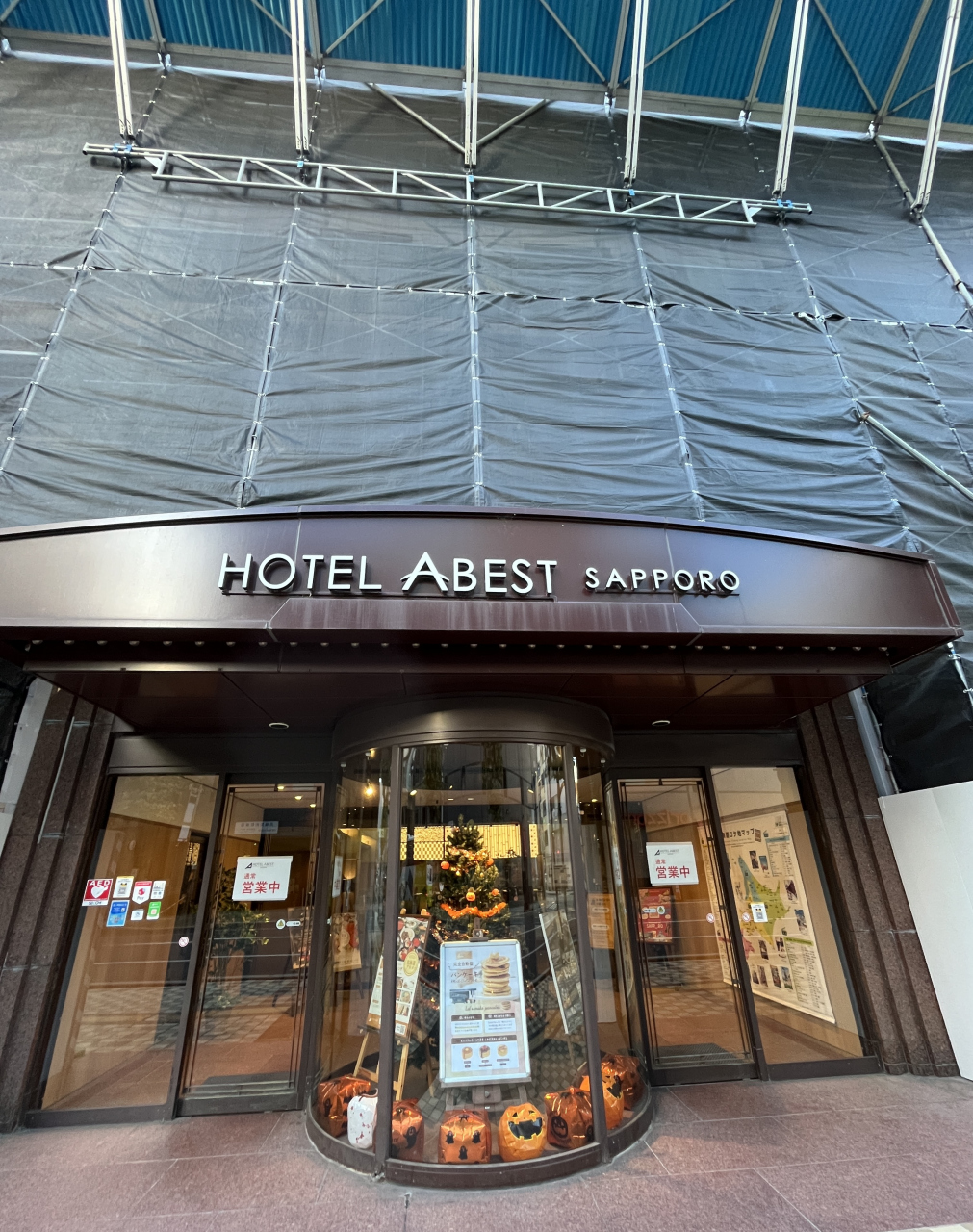 4連泊素泊まりしました。8月に続いての利用です。狸小路にあり、元サンルート。買い物や飲食などに便利な立地で、道路向かいには新千歳空港行のバス停があります。チェックイン時に歯ブラシ持参と言うと、ペットボトルのお水を一本サービス。アメニティーもバイキングでいろいろ。14時前に着いたので、電気スタンドと加湿器付き清浄機、電気スタンドをリクエストし、キャリーのお部屋入れもお願いしました。全日お掃除キャンセルも申し出ました。冷蔵庫に棚がなかったので、翌日朝フロントに、「棚がないと雪崩が起きるので、何とかならないか?お掃除キャンセルしているので、夜戻ってきたときにフロントで分かるようにしておいてほしい」「お戻りは何時?」「18時半くらい」と。戻ってきたら「テレビ横に棚を置いておきました」と。お掃除キャンセル=ドントディスターブのつもりでいたら、無断入室したと。私は一旦お部屋へ。冷蔵庫の扉が90度開かないので、棚板は斜めにしか入らず。再度フロントに行き、棚の状態と、無断入室について抗議。「共通理解する」とのお返事。客のプライバシー保護とか、安全管理に無頓着なスタッフがいるようで、大変残念に思いました。