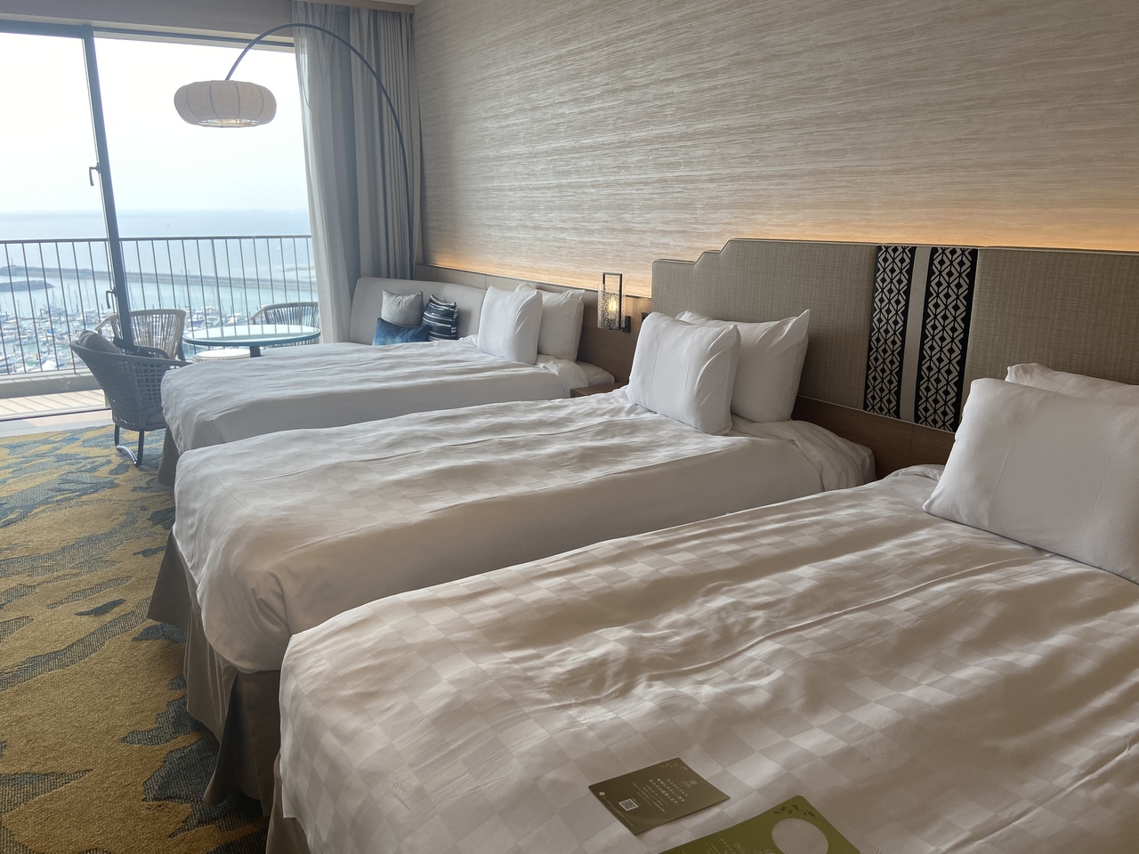 2024年5月に那覇に伺った際に宿泊いたしました。オーシャンビューのお部屋でとても広くテラスもありました。ホテル内の施設も充実しています。温水プール、インフィニティープールもあり、おしゃれです。ホテルはとても広くゆったりとした印象です。1階のレストランではケーキの販売も行っています。ホテル内にお土産屋さんも隣接されています。