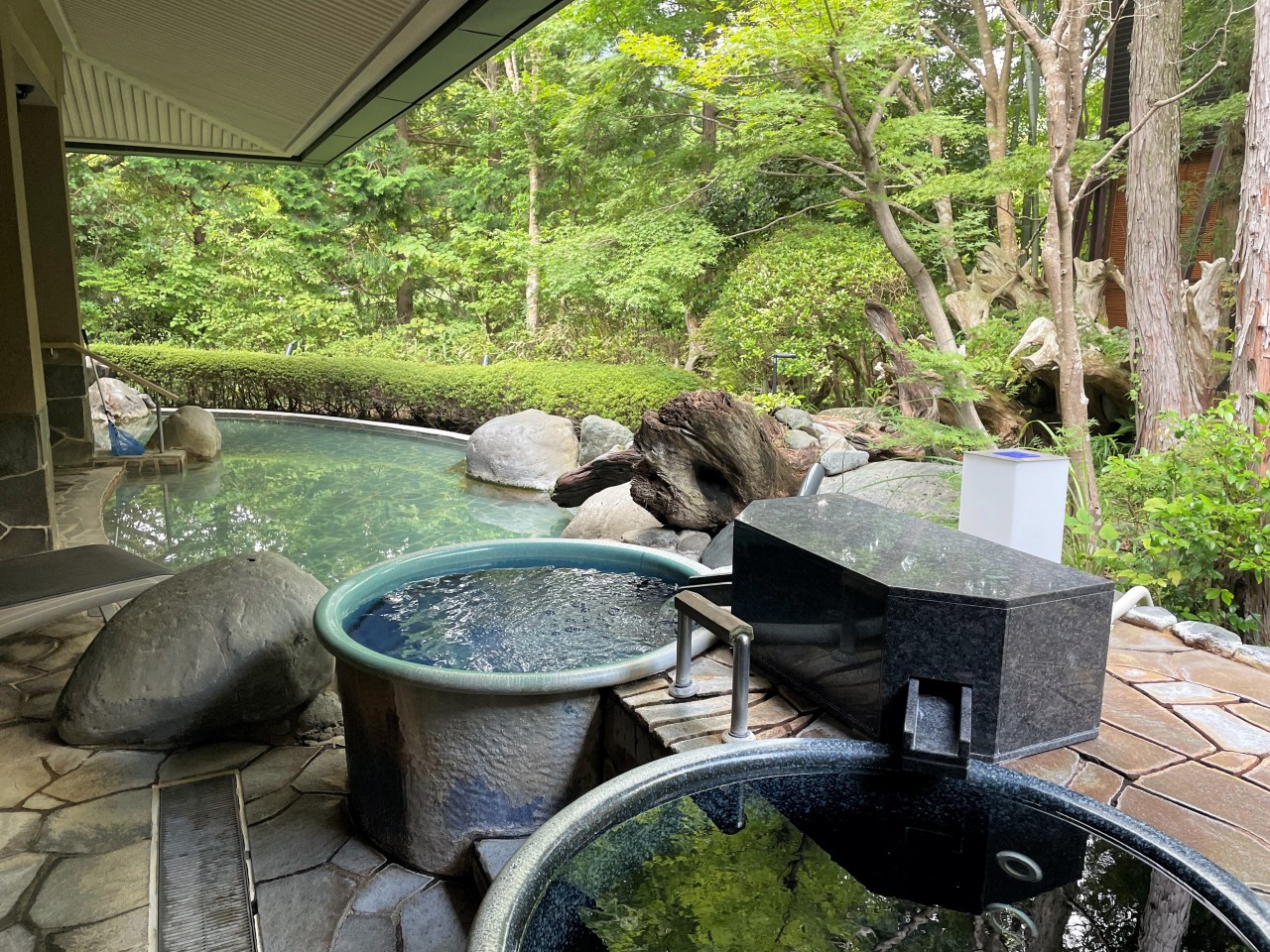 大浴場の露天風呂には「大涌谷温泉」、内湯には「新姥子温泉」をそれぞれ引湯、箱根の2種の名湯を一度に楽しめます。