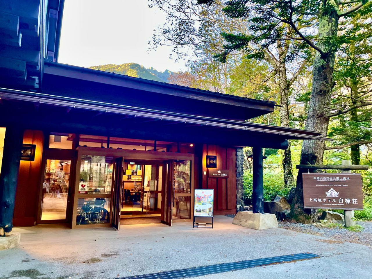 上高地・河童橋の目の前にある白樺荘は、立地が最高で観光の拠点にぴったりのホテルです。宿泊はしていませんが、館内のガイド案内を拝見したところ、清潔感があり、スタッフの対応も丁寧で心地よい印象を受けました。レストランやカフェからは穂高連峰を望む絶景が楽しめ、日帰りでも立ち寄りたくなる雰囲気です。次回はぜひ宿泊して、上高地の朝の静けさをここで体験してみたいと思いました。特にカフェは穂高連峰を見ながらコーヒーを飲めるので最高だと思います。