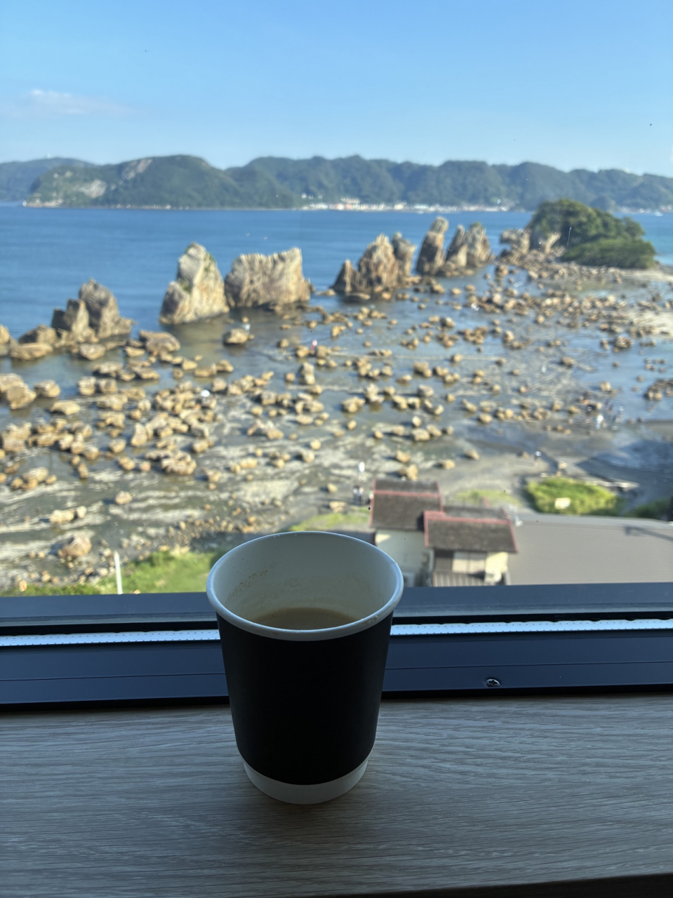 私は今回和歌山に車で来ました。フェアフィールドバイマリオット串本1泊目に選び、もう1泊別のハホテルで車の旅でした。個人的に車で移動するのは楽ですし、こちらのホテルは駐車場も無料完備です。凄く近くに全て揃う感じではないのですが、車があれば問題ないです。スタッフの方の対応が素敵で、思わずフェアフィールドバイマリオットのスタンプ帳(一箇所ずつスタンプ押して集めるもの)を買いました。普段そんなにないのですが、素敵な対応で何かしたいと思いました!部屋からは橋坑岩がばっちりみえました。暑い中見ていたので部屋から見える景色に感動しました。私は夜もぐっすり眠れましたし、夜遅くあいてるお店を探すのが大変でしたので、ローカルのスーパー、オークワさんに車でいきました。晩御飯と次の日の朝のパンを買いました。ホテルに無料のコーヒーやお吸い物、インスタントであるのが嬉しいです。朝はフロント横でゆっくり食べるスペースもあるのでこちらも良いです!チェックアウト後に那智の滝行きました。来た日には潮岬にもいきました。車でいけます。本当に良い滞在ができました。