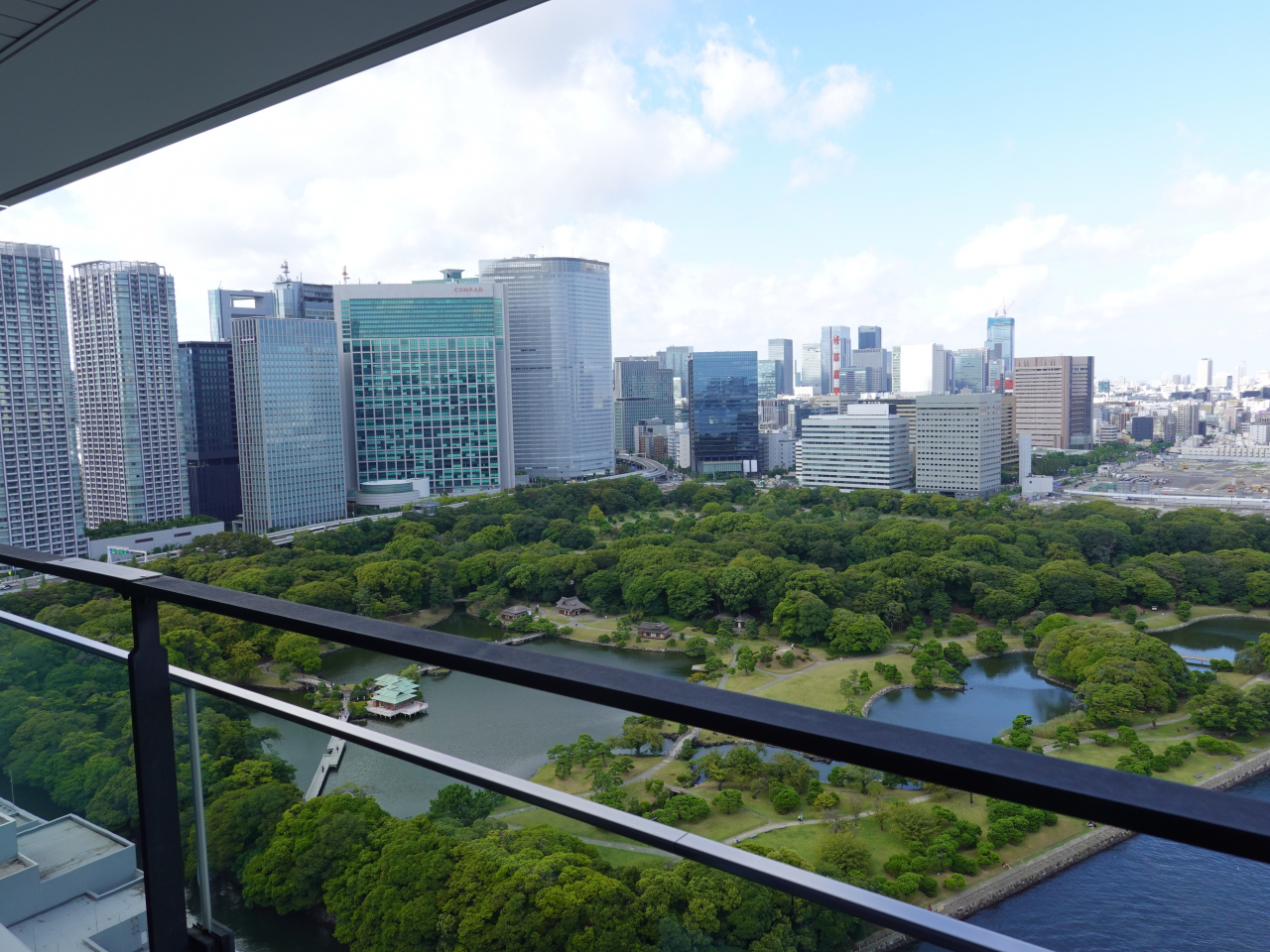 竹芝地区に建つマリオット系のホテルです。今回、9月上旬の日曜日に宿泊しましたが、夏休みも終わり、比較的稼働率が低い日ということもあり、浜離宮庭園を見下ろすバルコニー付きの部屋にアップグレードしていただきました。浜離宮庭園の向こうには汐留の高層ビル群の姿があり、遠くには東京スカイツリー、間近には墨田川の姿を見ることが出来る絶景です。客室は充分な広さに加え、お洒落心に富んでおり、ゆったりとホテルライフを楽しむことが出来ました。