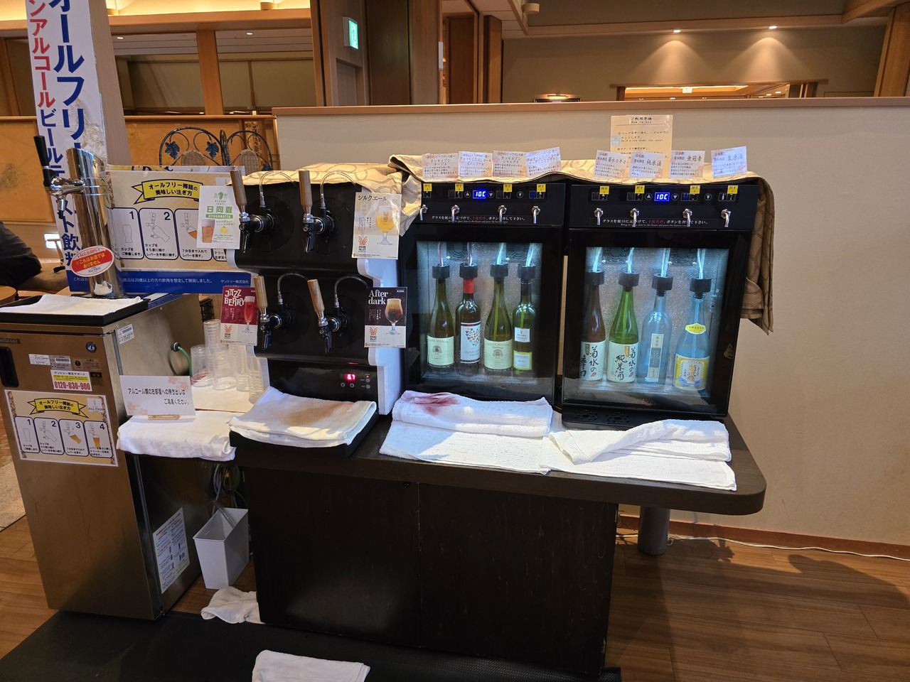 内風呂のほかに露天風呂がいくつもあり楽しめる。ロビーには無料のラウンジがあり、ワインや日本酒、ビールのアルコール類、コーヒーやソフトドリンクがあり、自由に飲める。夕方は、ミニケーキやホテルで販売している和菓子も食べられる。風呂上がりに、夕食後に、利用できて良かった。