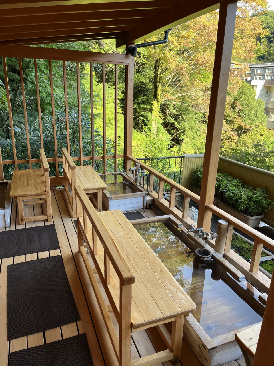 ただ、階段はとても急で、貸し切り露天風呂は4階です。5階には、眺めのいい足湯もありました。