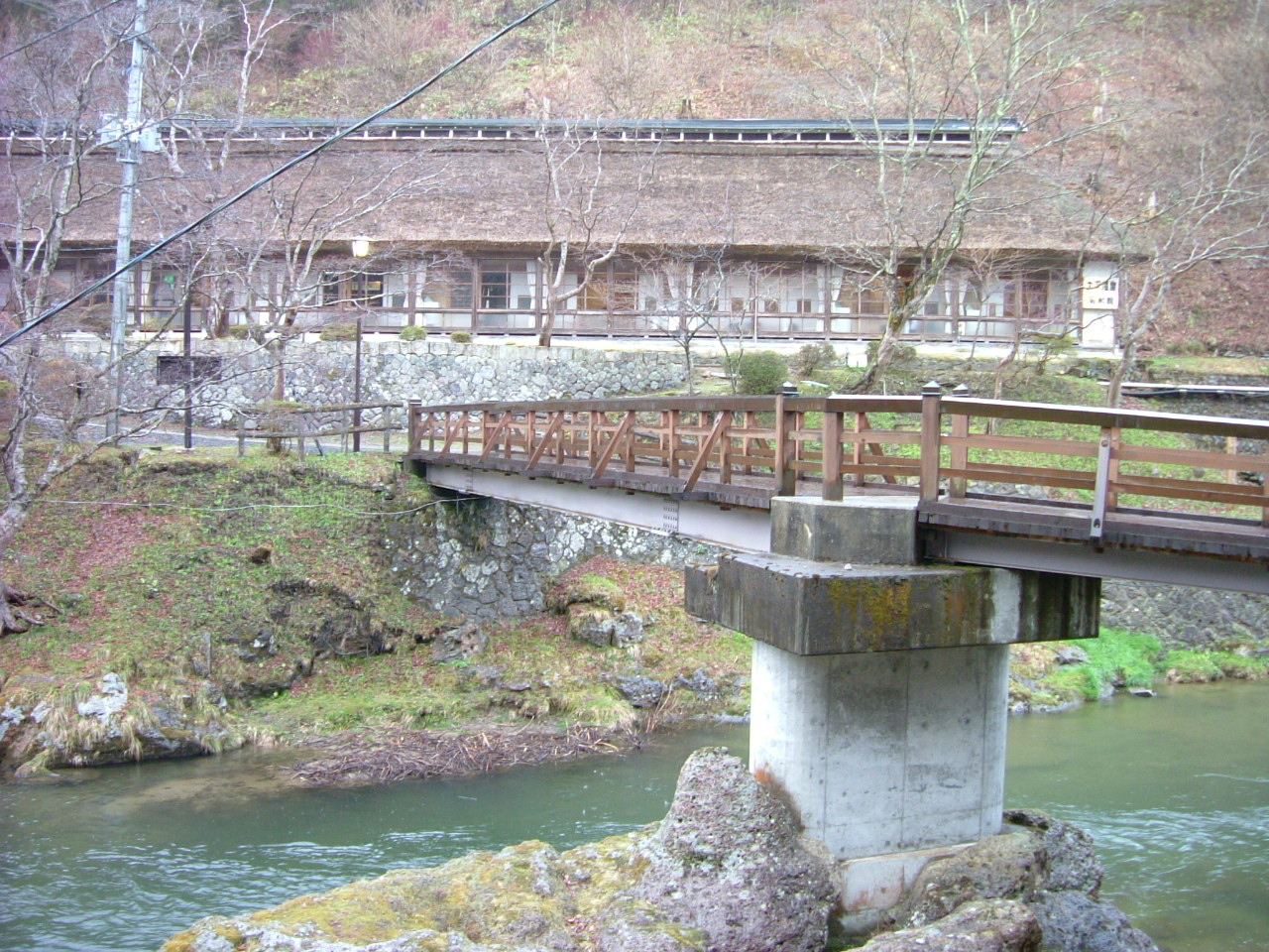 大沢温泉にはいくつかの宿があって、菊水館もその一つだったのですが、今は宿はやっていないようですね。ただ、大沢温泉で一番有名な湯治屋のブルーの露天風呂に入ると川の向こう側に見えているのがこの建物。茅葺屋根の風情たっぷりの姿は、露天風呂の価値を高めている存在かと思います。