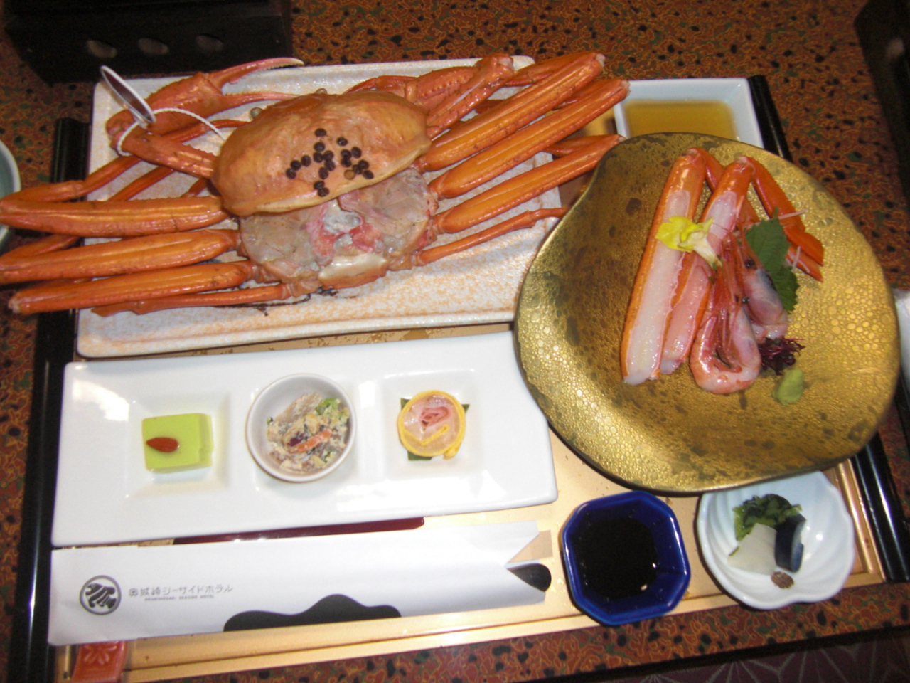 10月の日本海は時雨で天気が安定しないので晴天を狙ってホテルを予約し目的のタグ付きの香住の蟹をお腹いっぱい食べに竹野まで行きました。