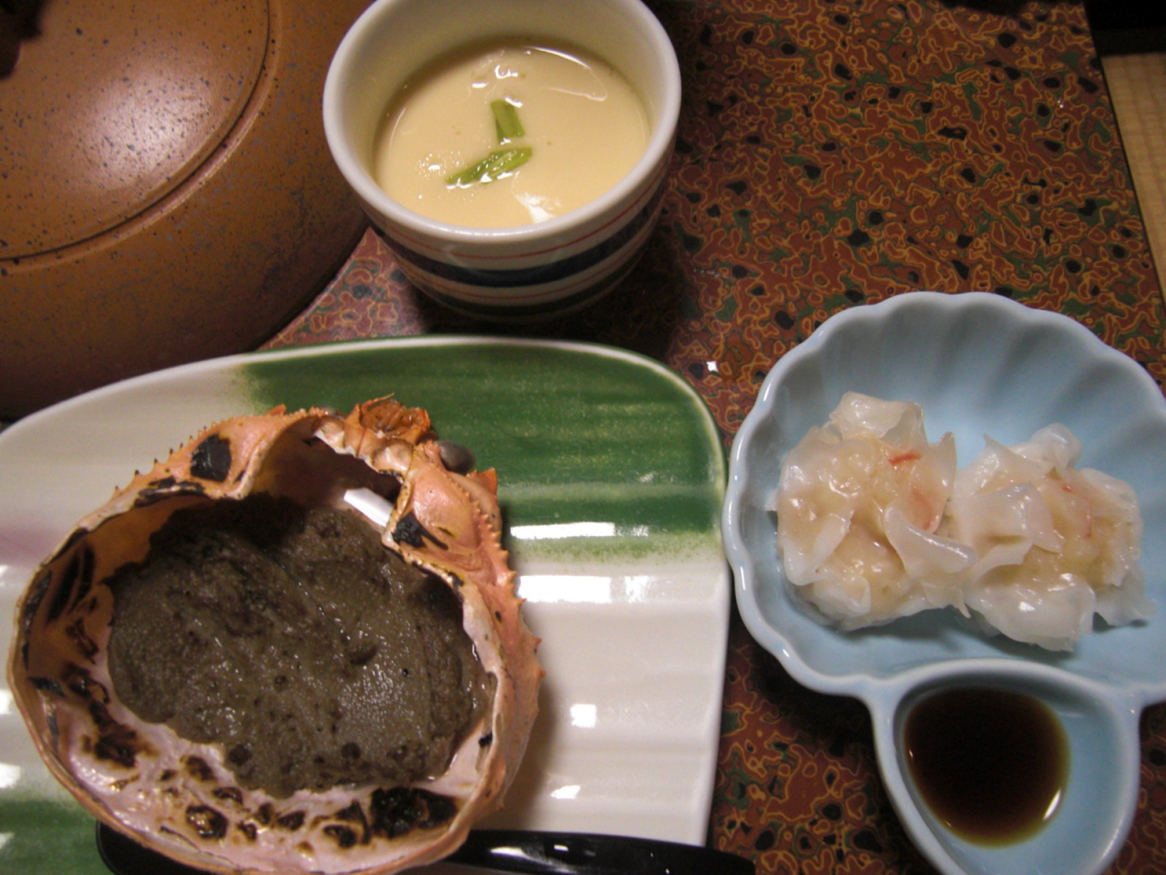 部屋食で頂いた蟹は流石に香住で甘みがありとても美味しい、最後のデザートのプリン迄しっかり頂きました。