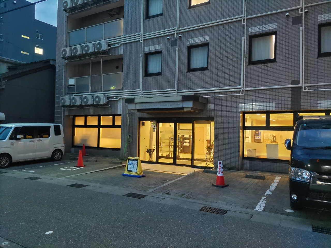 富山駅正面のメイン道路から少しはいったとこりにあります。駅から歩いて5,6分でつきました。週末だったので、宿泊料は平日に比べると高めだったようですが、それでも1万円でおさまりました。